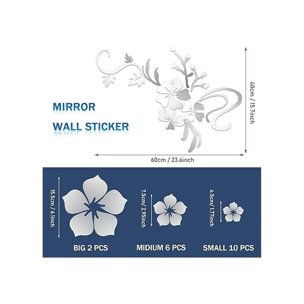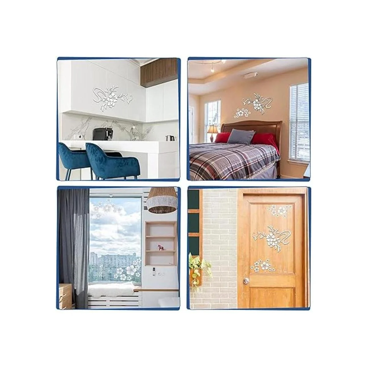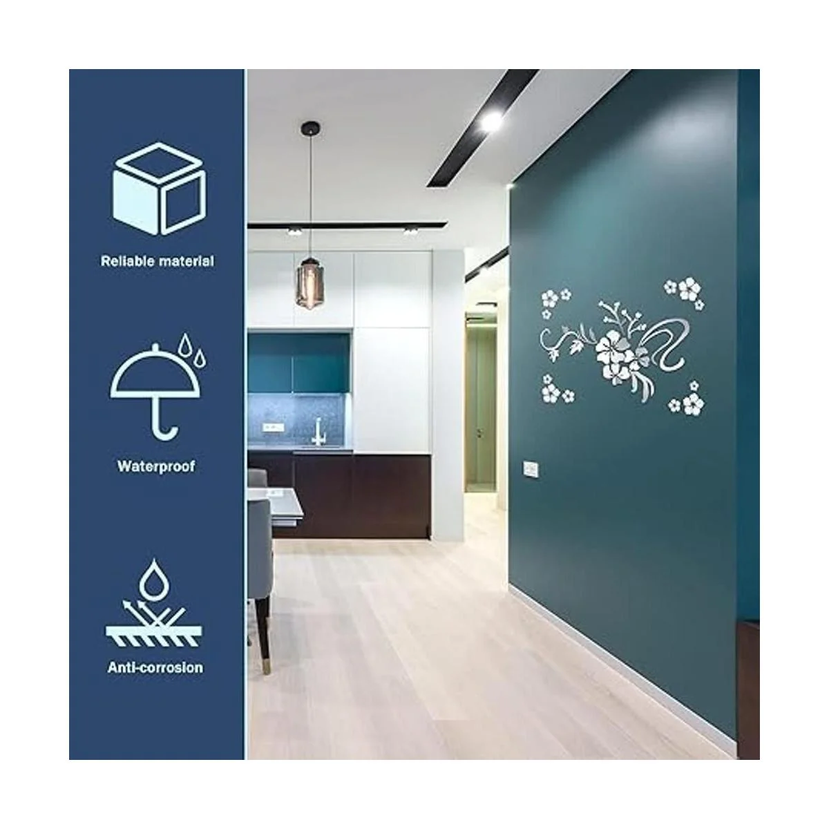 53 piezas de adhesivo de pared 3D de acrílico con diseño floral de espejo 3D de Sakura, adhesivo de pared extraíble de plata con diseño de flores 3D para decoración de pared para sala de estar, baño, oficina, dormitorio, ventanas, puertas