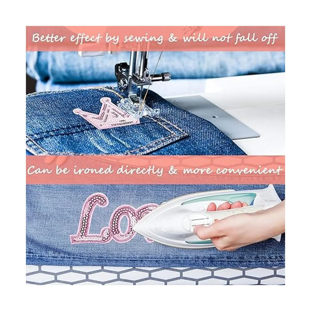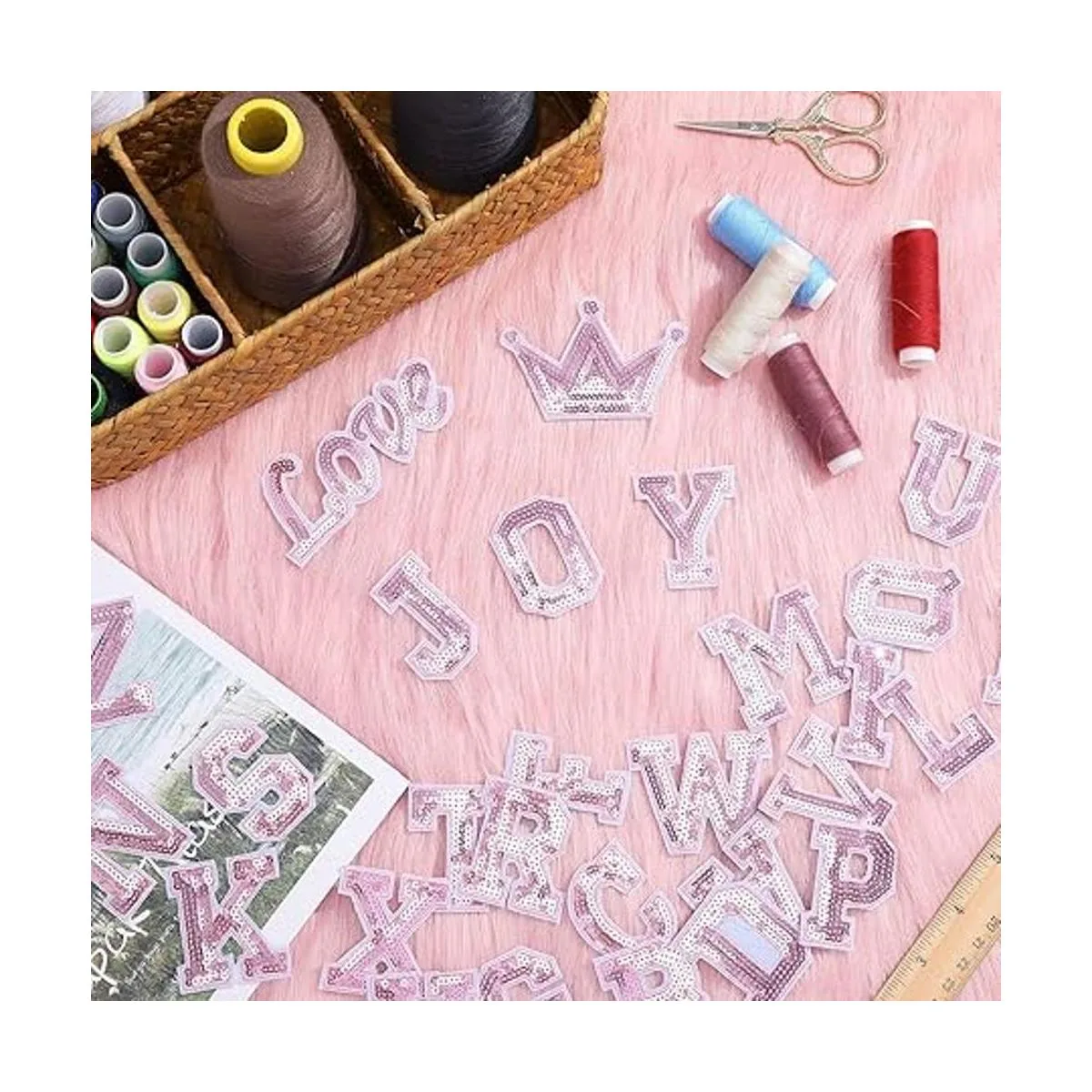 Exquisita artesanía: las calcomanías de bordado de letras están hechas de exquisitas lentejuelas de colores y telas no tejidas, tienen un bonito adhesivo con pegamento sellador térmico en la parte posterior; el patrón es transparente y no hay exceso de hilos