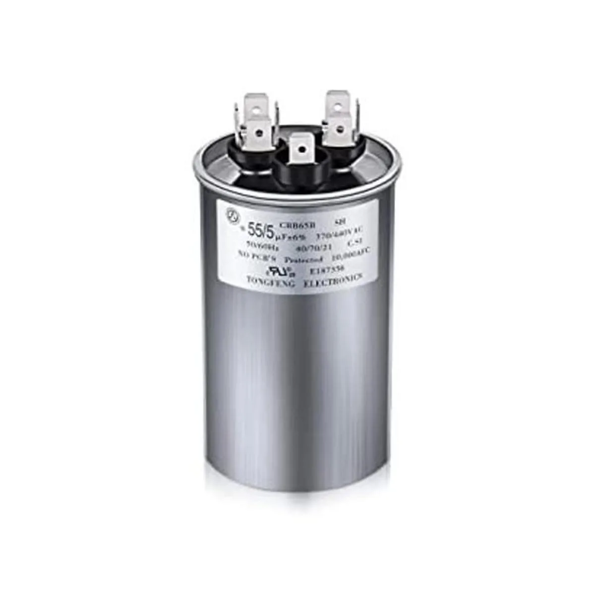 55/5 MFD uF ±6% 370/440 VCA CBB65B Condensador redondo de doble ejecución, condensador de funcionamiento del motor con certificación UL para condensador recto frío o bomba de calor piezas de aire acondicionado de repuesto