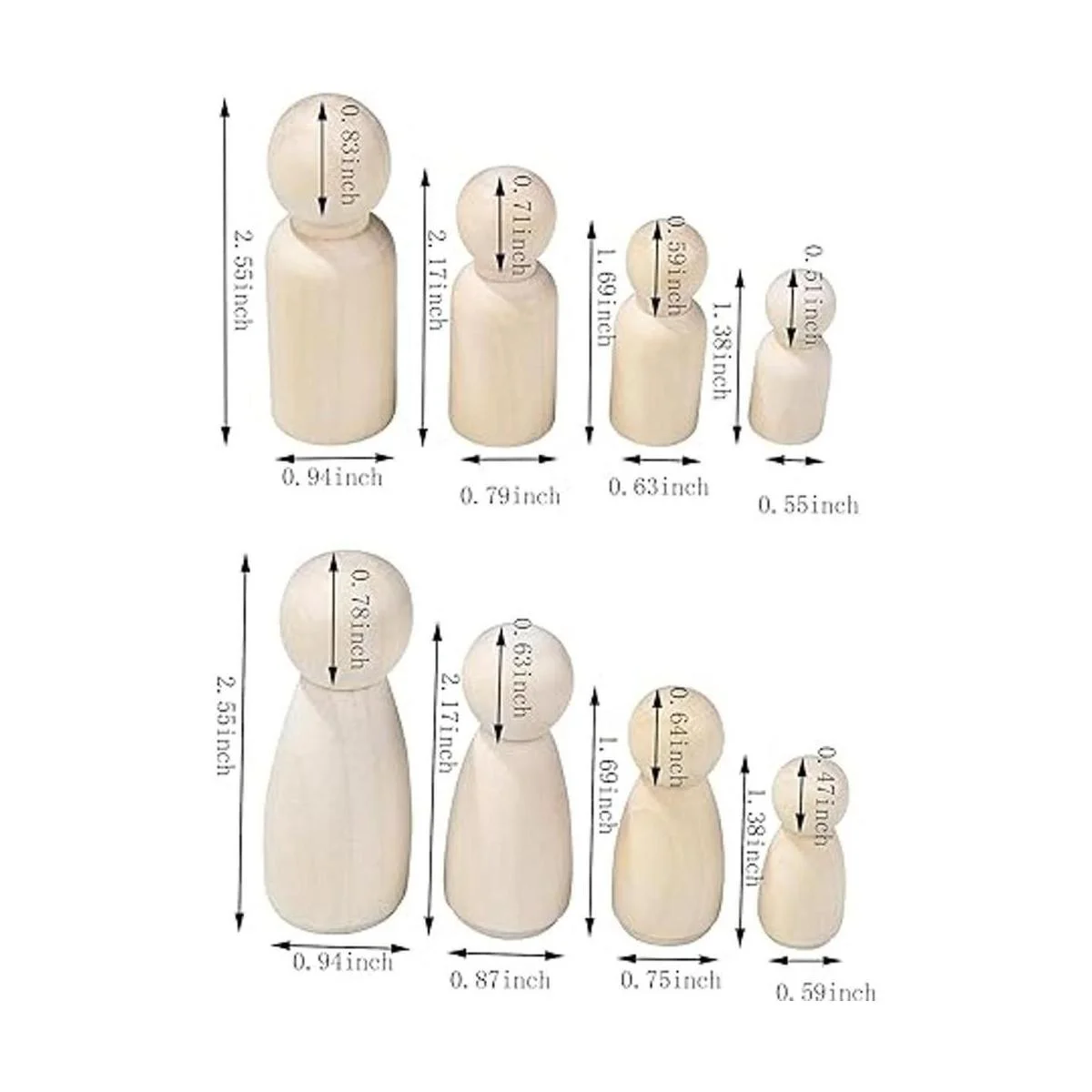 56 piezas de muñecas de madera natural sin acabar, pequeñas clavijas de madera para pintar o manualidades