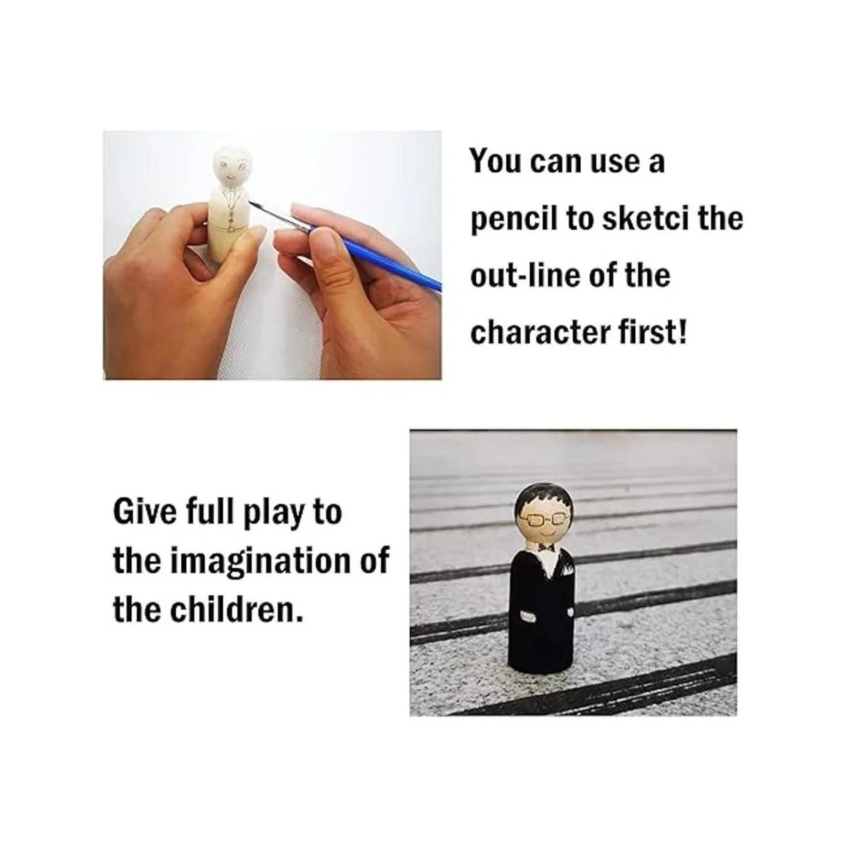 La composición de muñecas de uñas de madera: 2 padres 2.55 pulgadas, 2 madres 2.55 pulgadas, 5 hermanas 2.17 pulgadas, 5 hermanos 2.17 pulgadas, 9 hermanos 1.69 pulgadas, 9 hermanas 1.69 pulgadas, 12 bebés niñas y 12 niños 1.38 pulgadas. Puedes utilizar marcador, pintura y algunas cuentas, encaje y así sucesivamente para decorar al hombre de madera con niños.
