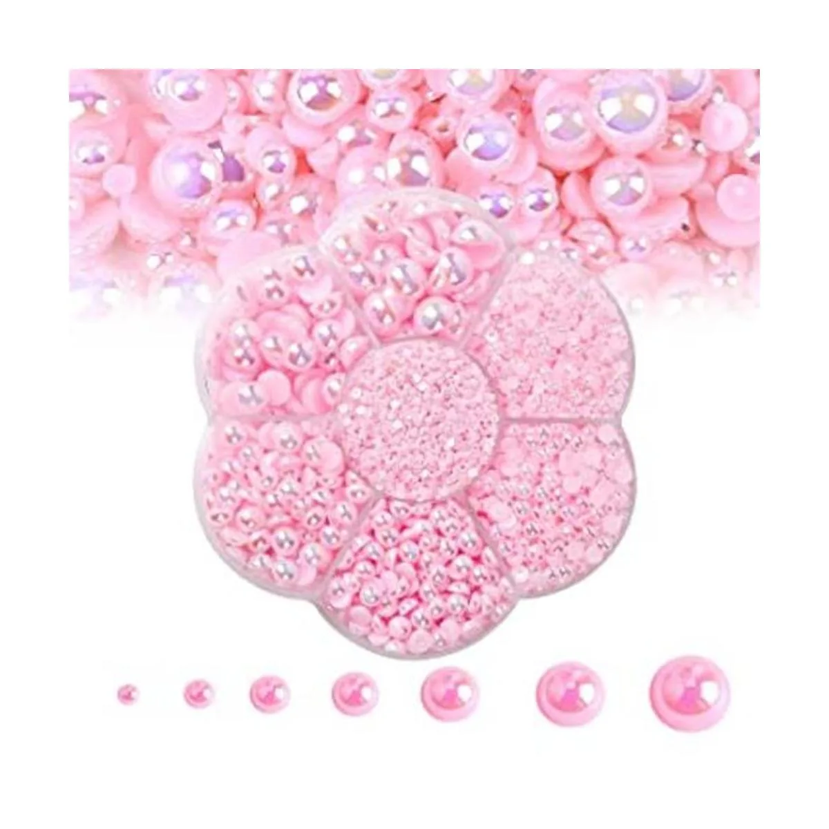 Materiales: estas manualidades de media perla para arte de uñas y fabricación de joyas están hechas de material ABS de alta calidad, superficie suave y brillante, añadiendo un toque de brillo y la elegancia de las perlas a las decoraciones de tus perlas. Duradero y no se daña ni se decolora fácilmente.