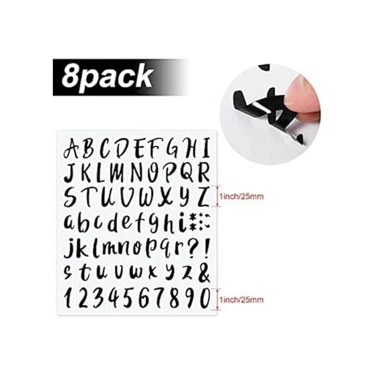 El paquete incluye: recibirás 8 hojas de números de letras de vinilo autoadhesivas, total 576 piezas, incluyendo 208 letras mayúsculas, 208 letras minúsculas y 160 piezas numéricas y puntuaciones, abundante cantidad para satisfacer tus requisitos de uso diario