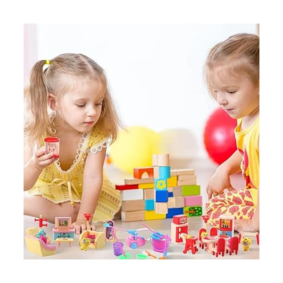 59 piezas de accesorios de muebles de casa de muñecas en miniatura, sala de estar, comedor, dormitorio, baño, muebles de casa, muñecas, juego de limpieza de tareas domésticas, juguetes de jardín de infantes, juguetes de simulación