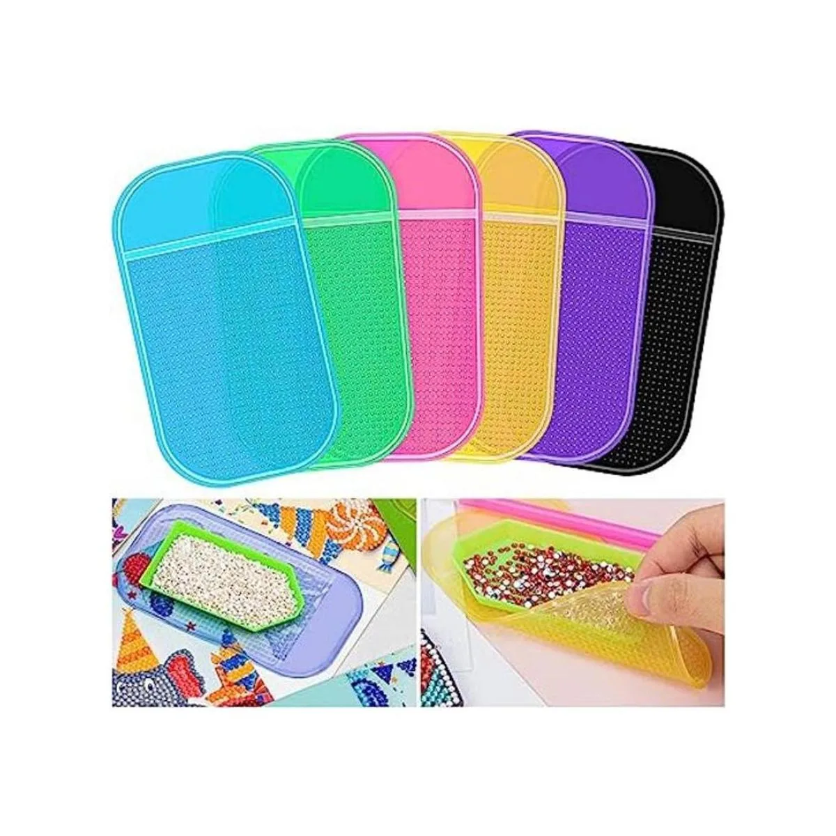Recibirás: incluye 6 alfombrillas antideslizantes de pintura de diamantes en 6 colores, verde, azul, rosa, amarillo, morado y negro, puede mantener la bandeja en su lugar perfectamente.