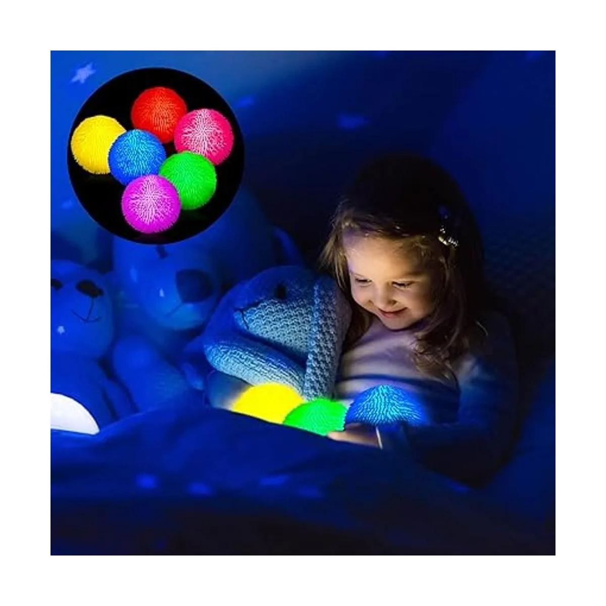 6 bolas acolchadas que brillan en la oscuridad, bola de estrés de 9 pulgadas, bola sensorial elástica, bolas de alivio del estrés para adultos, regalos de fiesta brillantes, bolsas de regalos, rellenos de calcetines, colores surtidos
