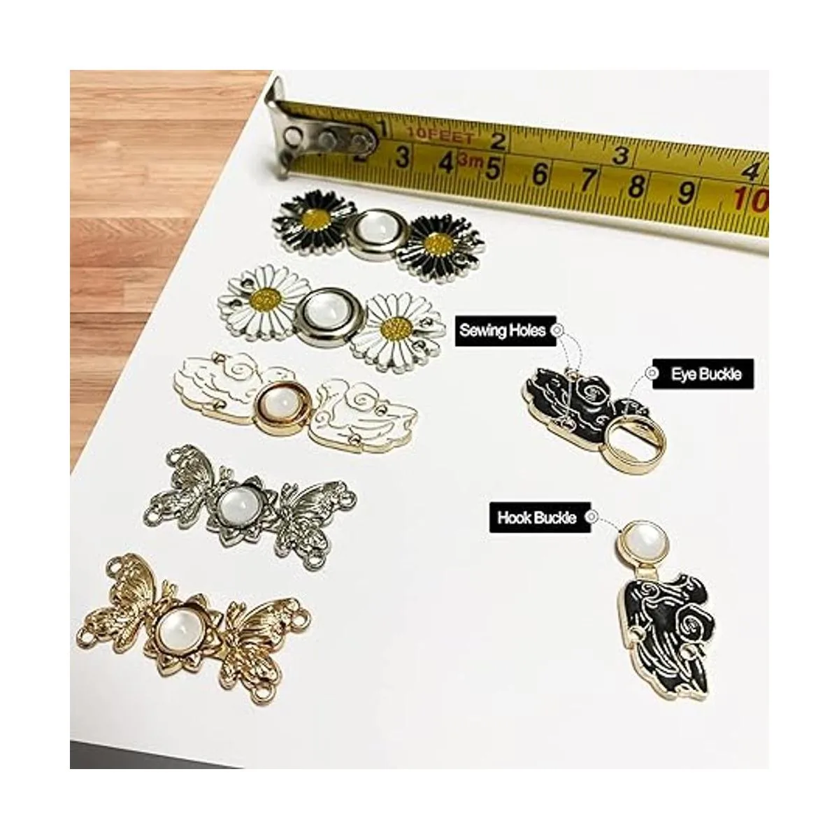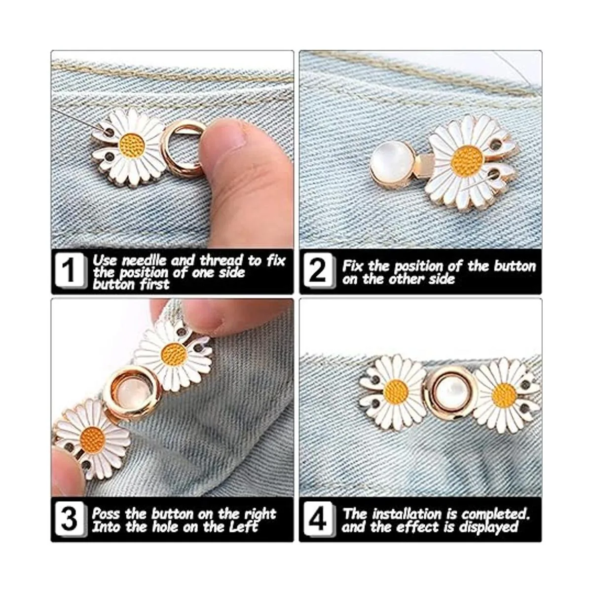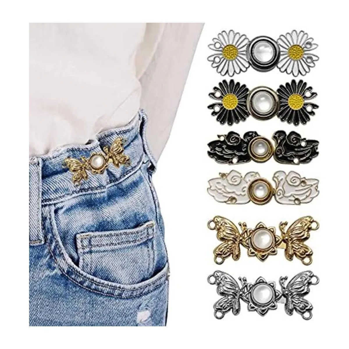 6 botones para vestido de jeans, suelto, grande, clips de pantalones para cintura más pequeña, costura de bricolaje, hebilla de cintura ajustable, ajustador de flores de perlas de moda, broche para niñas y mujeres