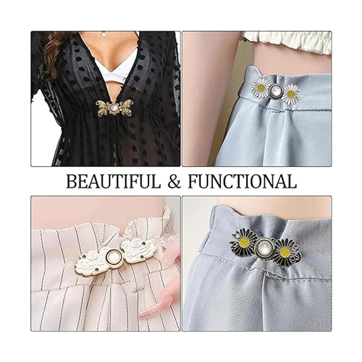 Multiusos: este pin de botón puede ajustar el tamaño de la cintura y faldas florales, vestidos en un segundo cuando está demasiado suelto, y también se puede utilizar como accesorios para sombreros, cortavientos, camisas, pantalones, mochilas, abrigos de algodón, trajes, pantalones, abrigos, camisas, etc.