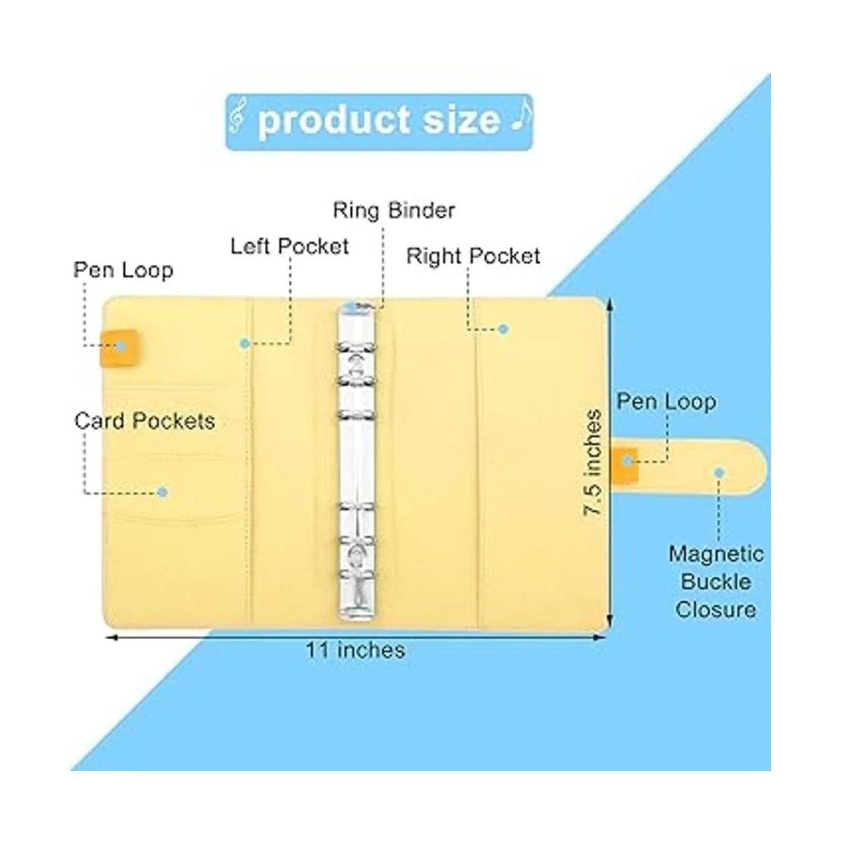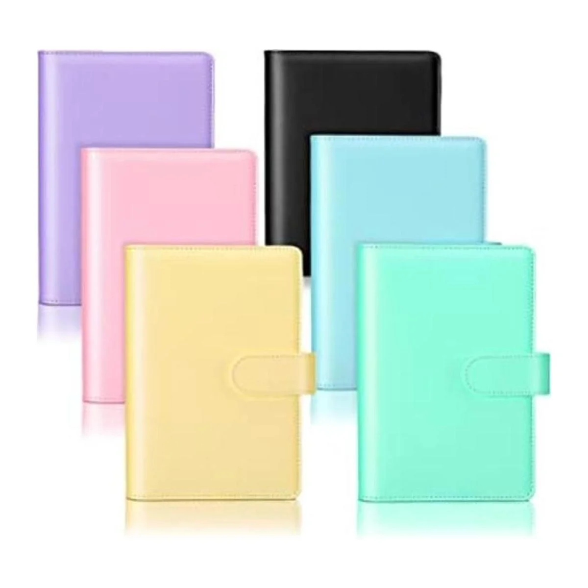 6 carpetas de piel sintética A6 recargables, 6 anillos, con cierre de hebilla magnética rosa, verde, morado, azul cielo, amarillo, negro