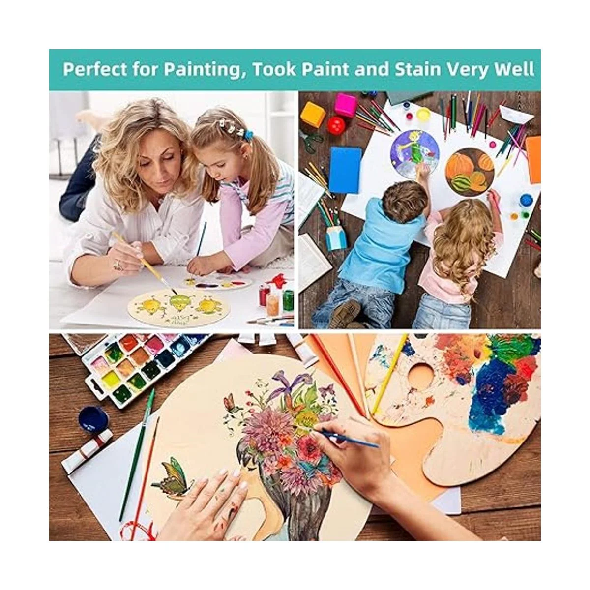 Suministros de manualidades: la superficie de ambos lados de los recortes de adorno de madera está en blanco, conveniente para escribir y pintar, también se puede perforar un agujero y luego colgarlos, simplemente haz manualidades o decoraciones con tu familia o amigos juntos