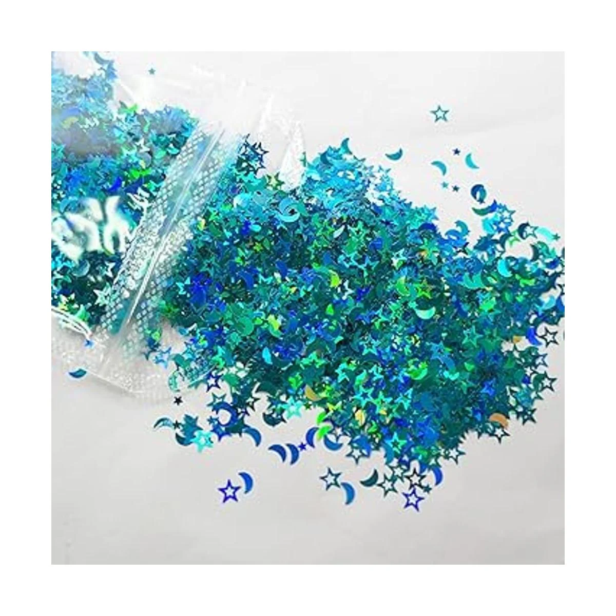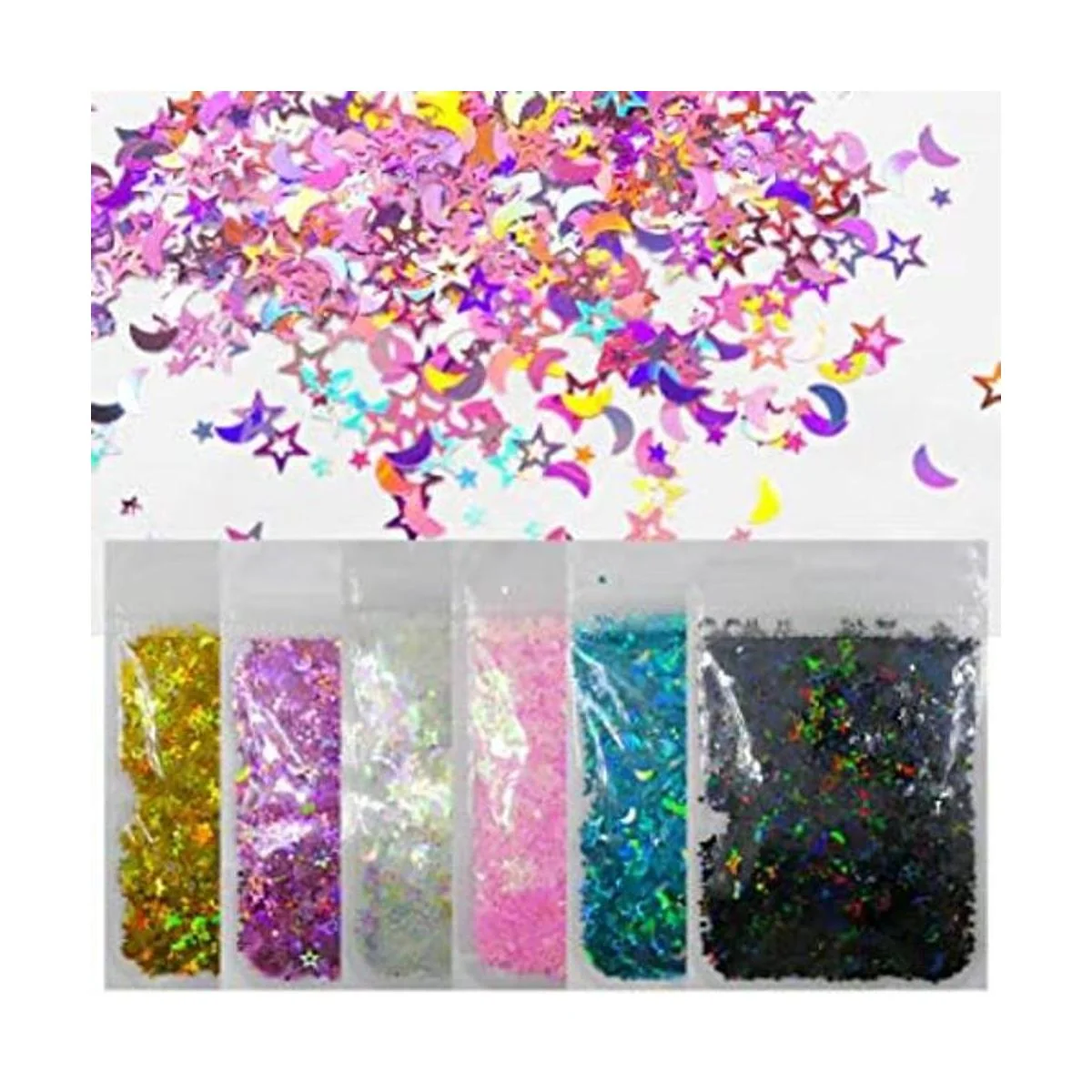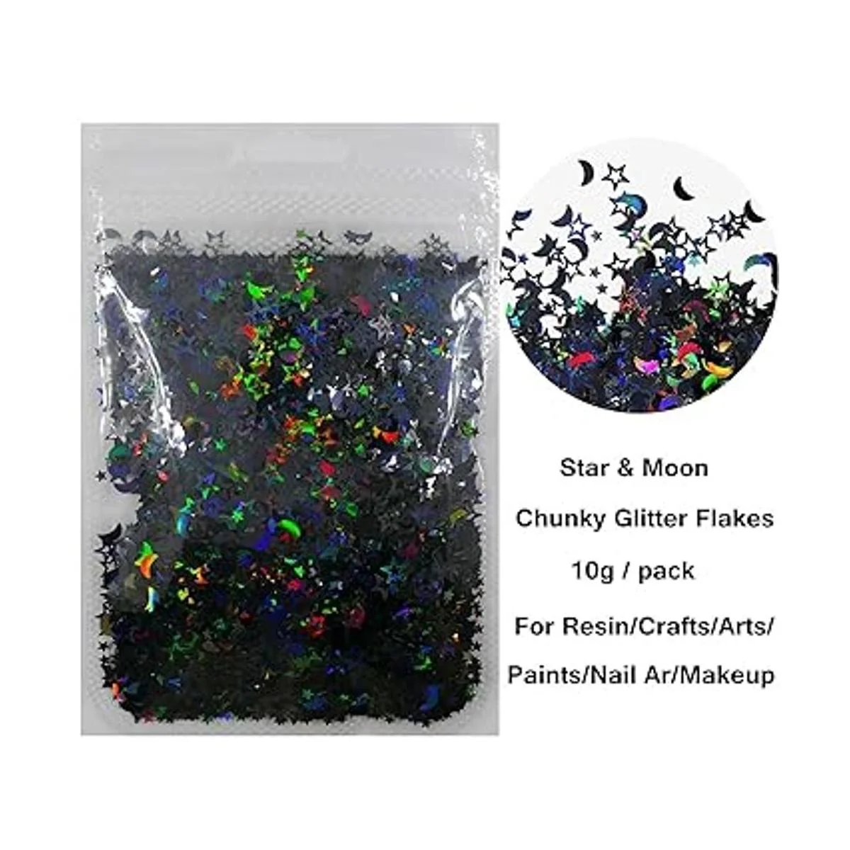 6 colores de estrellas, luna, grueso, con purpurina, accesorios epoxi de resina, holográficos, negro, azul, estrellas, confeti, manualidades, decoración de lentejuelas para arte de uñas, limo, maquillaje, fabricación de joyas