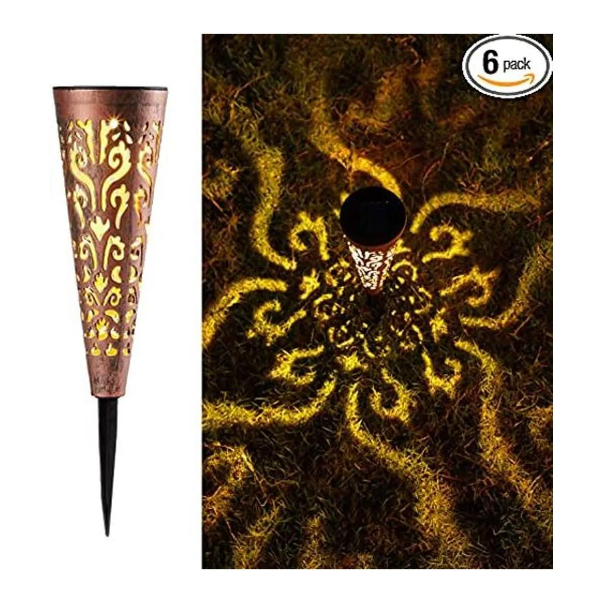 6 estacas de luces solares para jardín, iluminación decorativa para patio, camino, patio, decoración de césped bronce