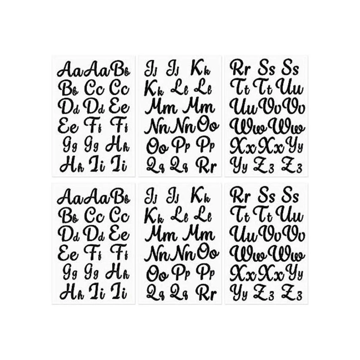 6 hojas de letras termoadhesivas en la parte superior e inferior, letras del alfabeto termotransferibles, letras de vinilo para camisetas, ropa, bolsas, sombreros, proyectos de decoración negro