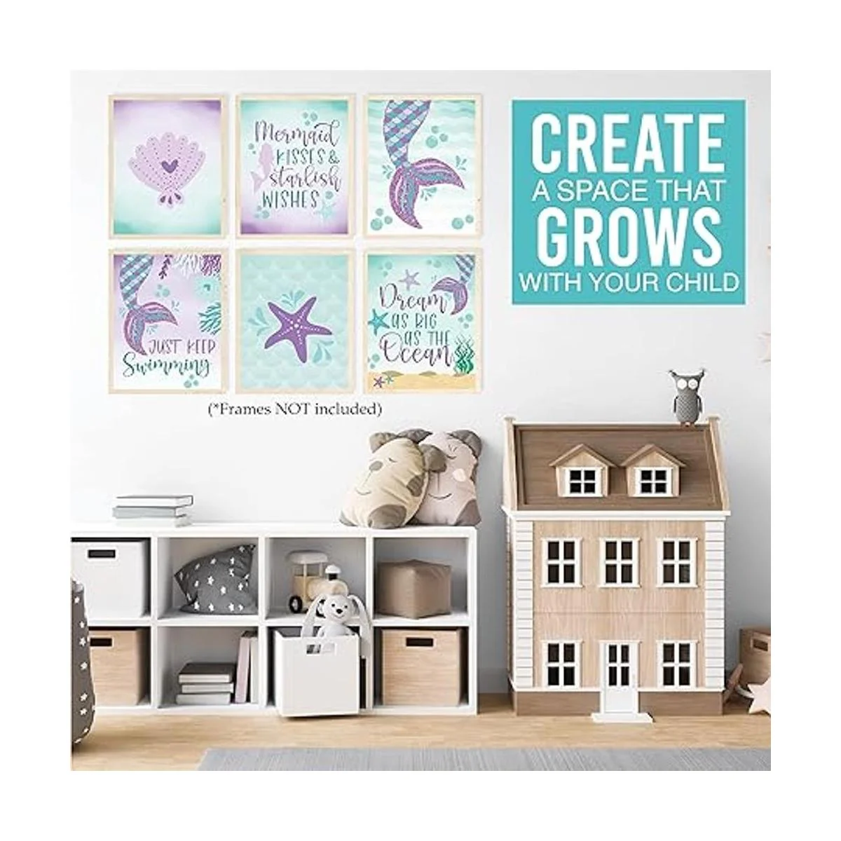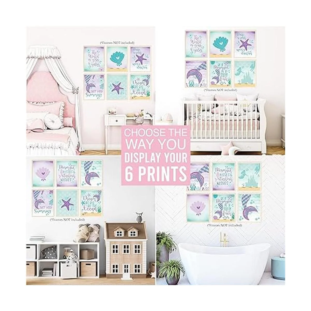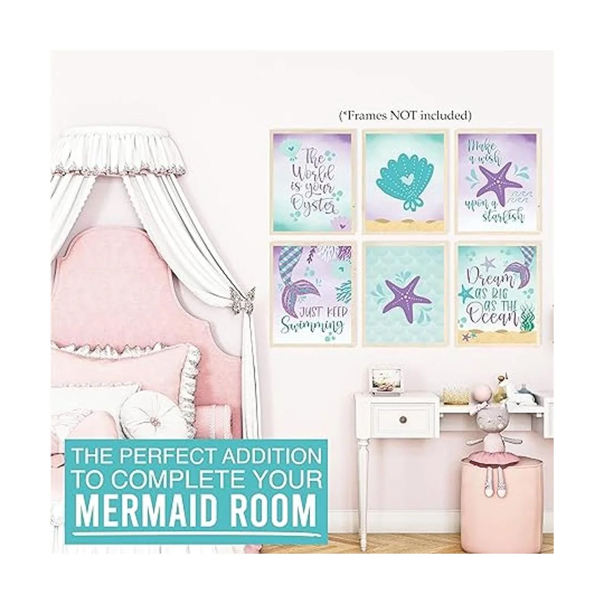 Dale vida a cualquier habitación; utiliza esta decoración de habitación de sirena para el dormitorio de niñas para completar una guardería, dormitorio, sala de juegos o incluso una fiesta de cumpleaños; estas impresiones de decoración de pared para niñas son ideales para usar como decoración de pared de habitación de niños, decoraciones de cumpleaños de sirena o suministros de fiesta de sirena.