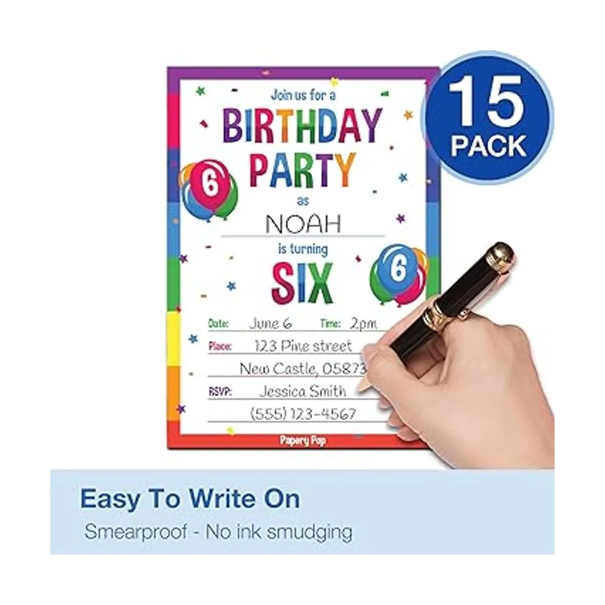 Alta calidad 6 invitaciones de cumpleaños impreso en cartulina mate de gramaje extra