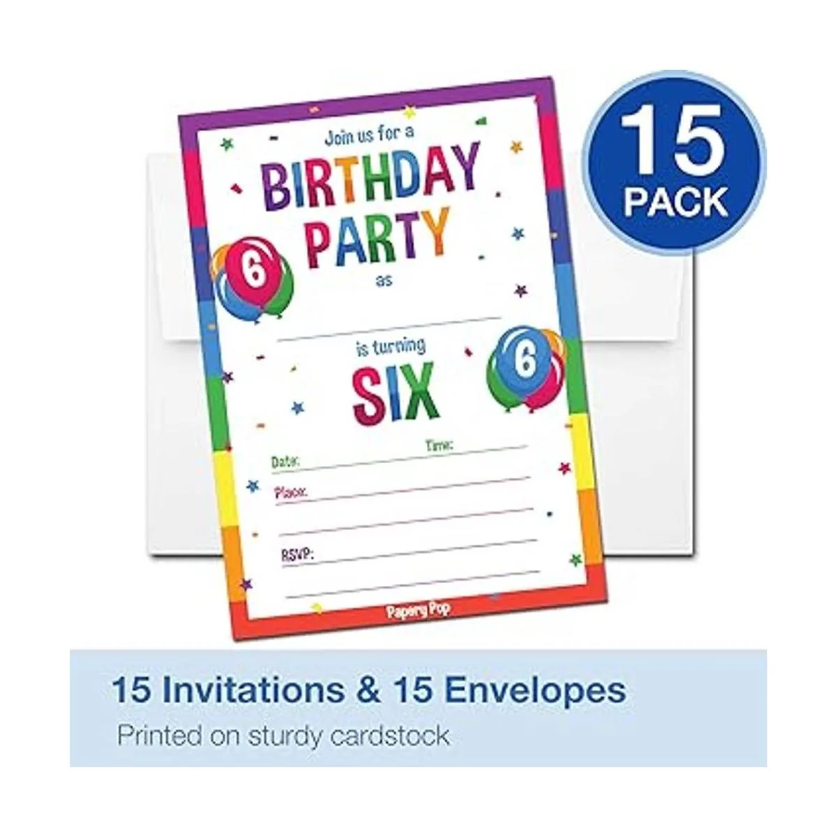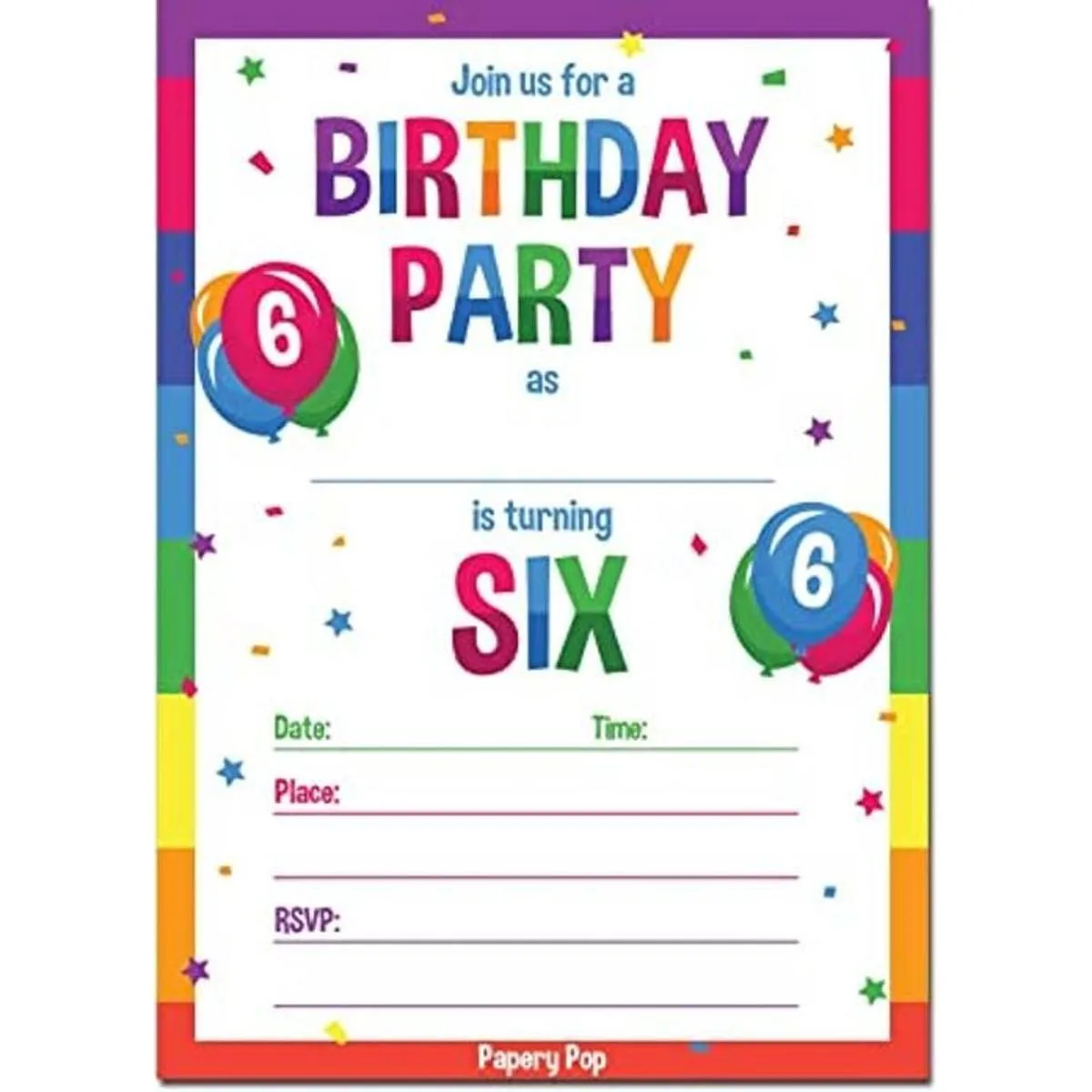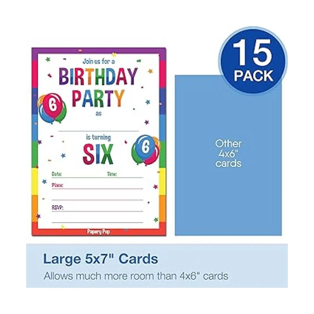 6 invitaciones Fiesta de cumpleaños con sobres 15 Count 6 Year Old Kids invitaciones de cumpleaños para niños o niñas Arco Iris