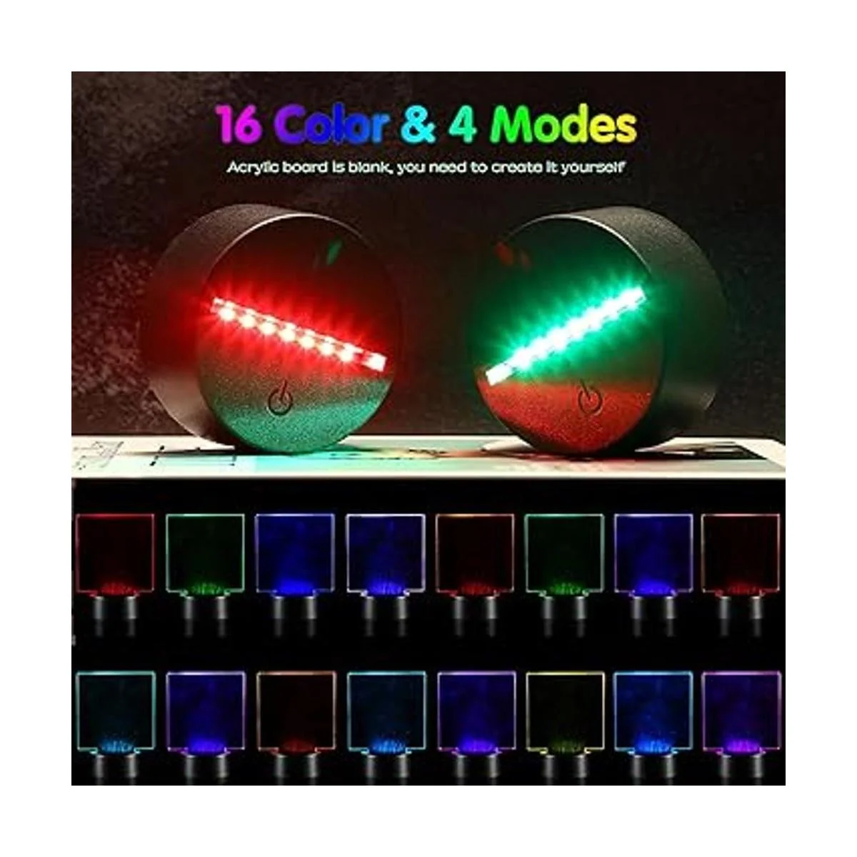Varios colores para elegir: este soporte de exhibición de luz cuenta con 16 colores diferentes y 4 modos para tu elección, por lo que puedes mostrar tus patrones acrílicos favoritos no incluidos, que pueden ser hermosos adornos en tu habitación