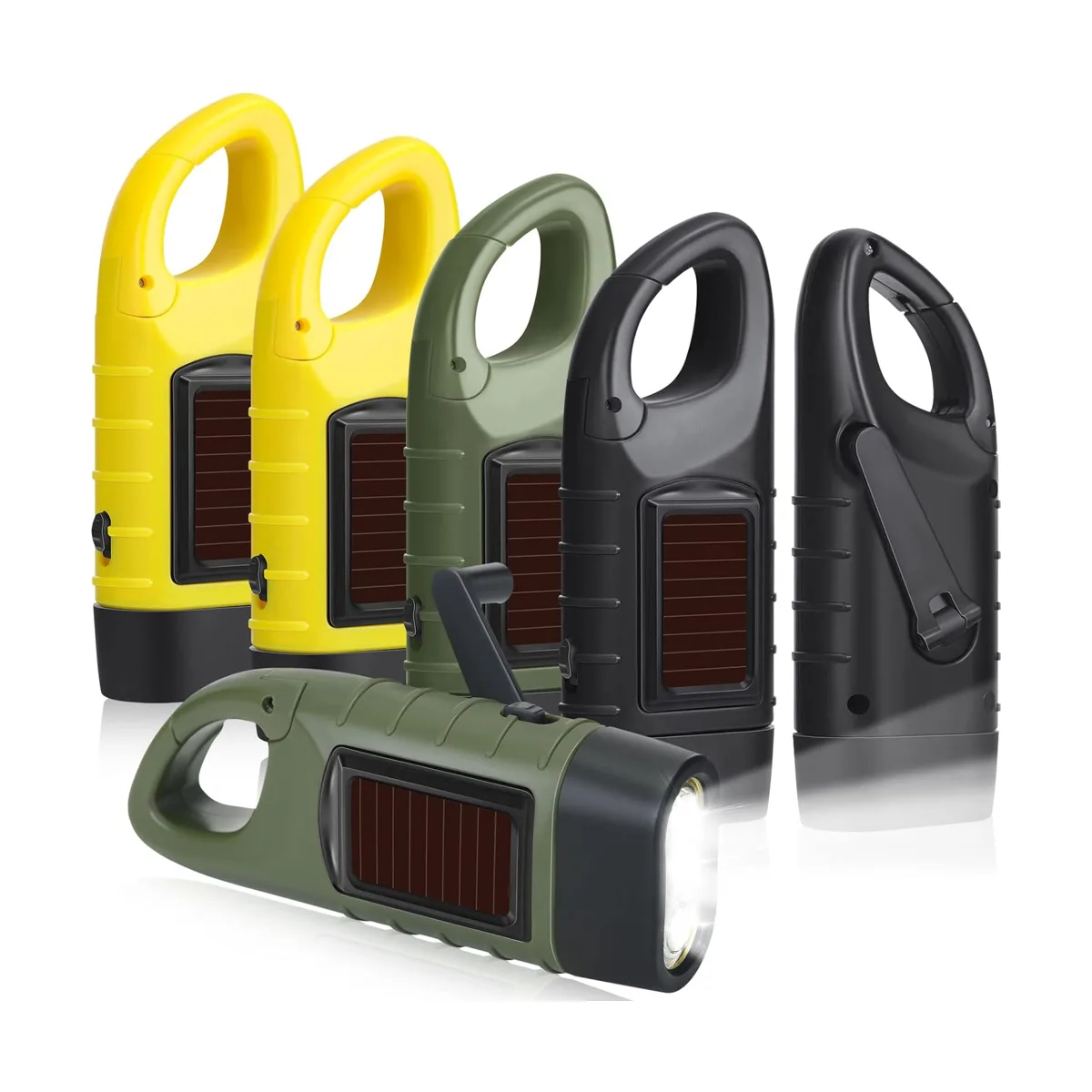 6 linternas de manivela con energía solar, recargables de emergencia, linternas LED de mano para emergencias, equipo de supervivencia, deportes al aire libre, camping, senderismo, mochila de seguridad, verde, amarillo, negro