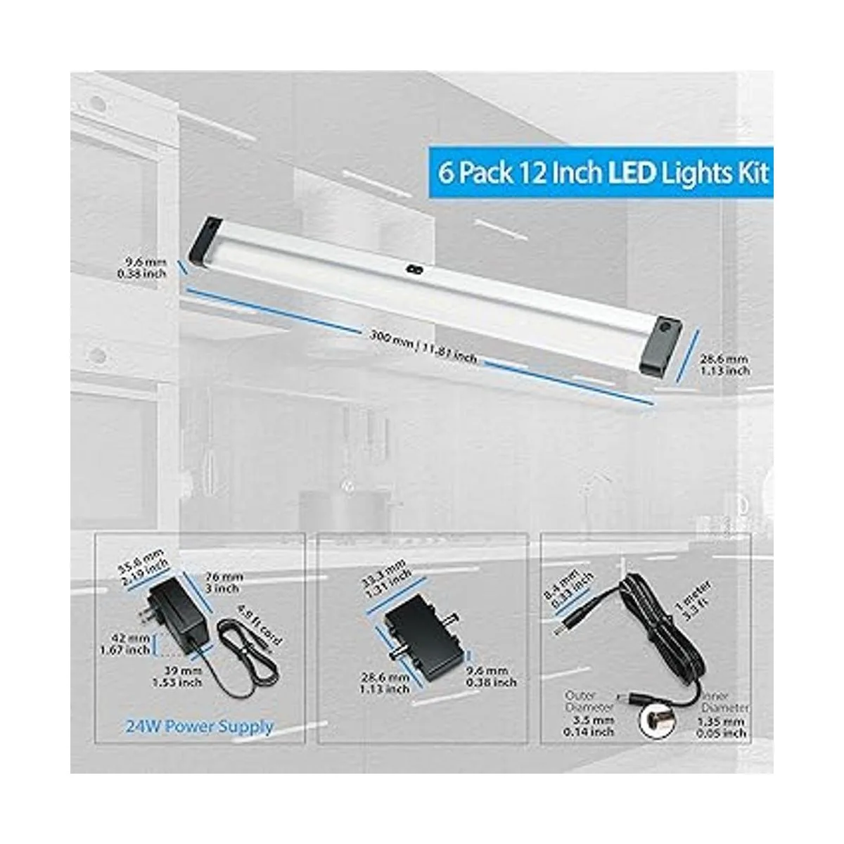 6 paneles de iluminación LED para debajo del gabinete EShine con sensor infrarrojo. Activación con movimiento de mano; brillante, fuerte y estable; fácil de instalar, atornillar y opciones de calcomanía 3M incluida; kit de lujo, Blanco, EL3006W, 24.00watts, 12.00 volts