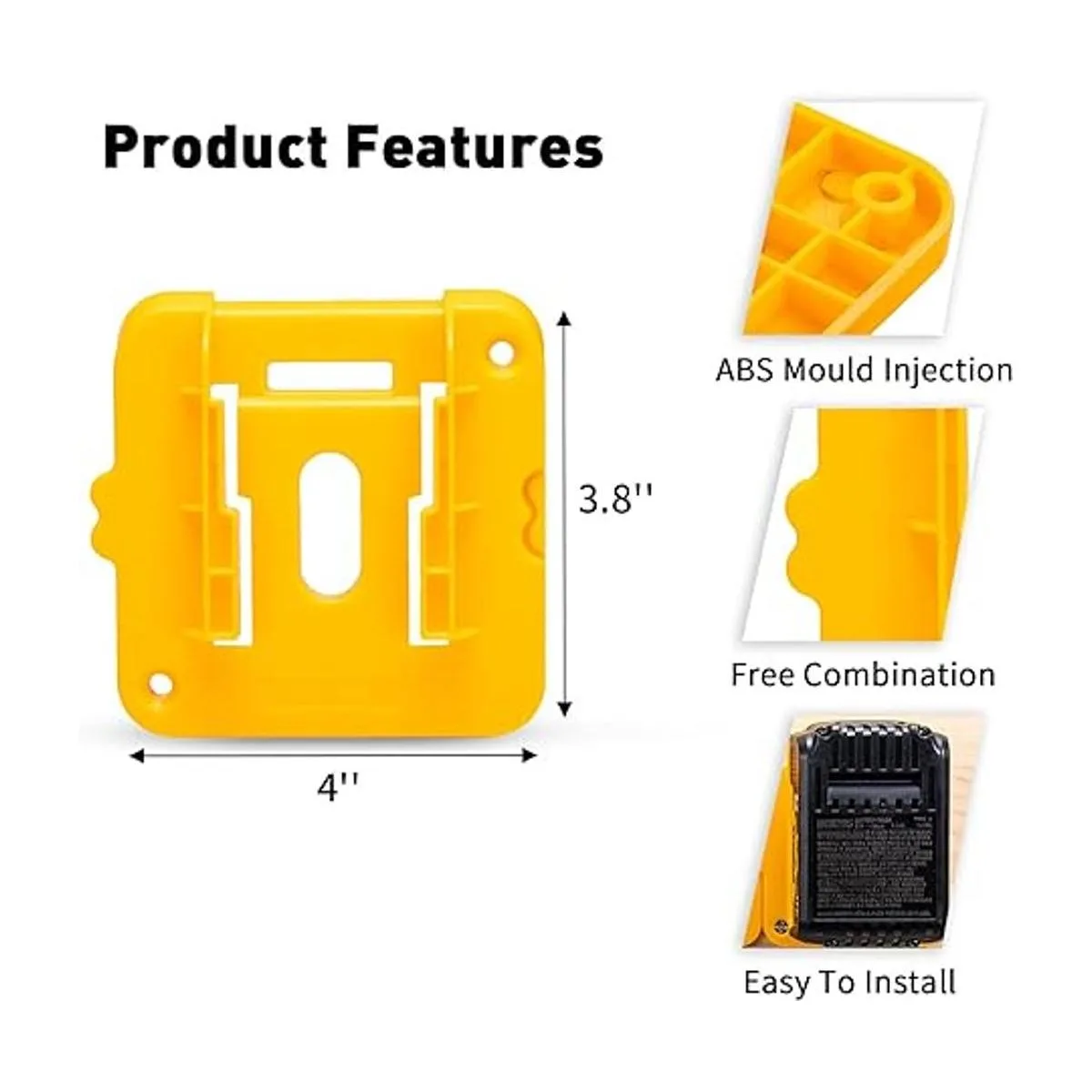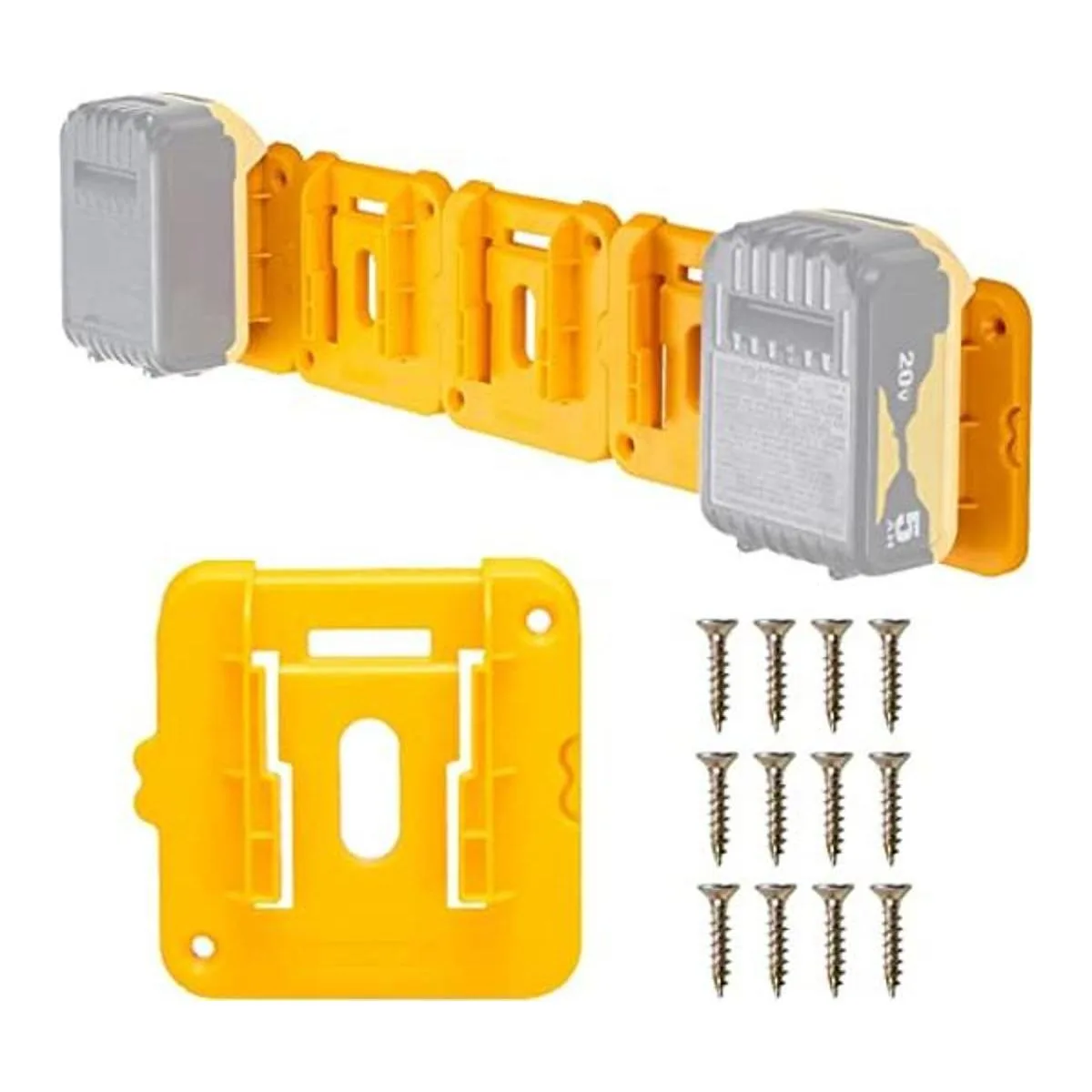 El soporte de batería se ajusta perfectamente a la batería Dewalt de 20 V/60 V. Funcionan bien para colgar tus baterías de una manera organizada en una pared o debajo de un estante.