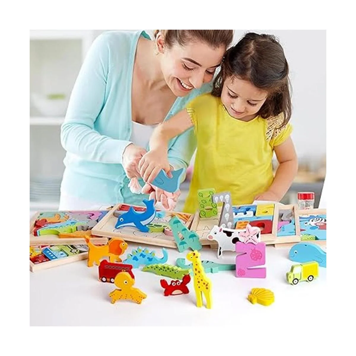 Material natural: los bloques de rompecabezas de este juego están hechos de tablero de densidad, que tiene las características de resistencia al impacto, alta resistencia y densidad uniforme, por lo que es un buen material para su aplicación en juguetes de madera. Con superficie plana esmerilada y fuerte dureza, puede tener una larga vida útil.