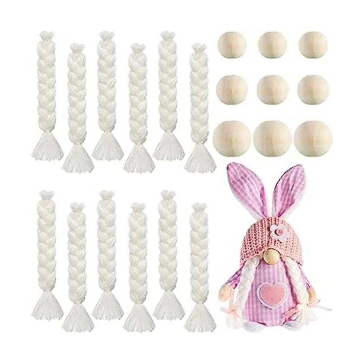 6 pares de trenzas de gnomo para manualidades con 9 piezas de narices de gnomo, suministros para hacer manualidades, trenzas enanas precortadas, barba de gnomo y pequeñas bolas de madera sin terminar, accesorios hechos a mano blanco