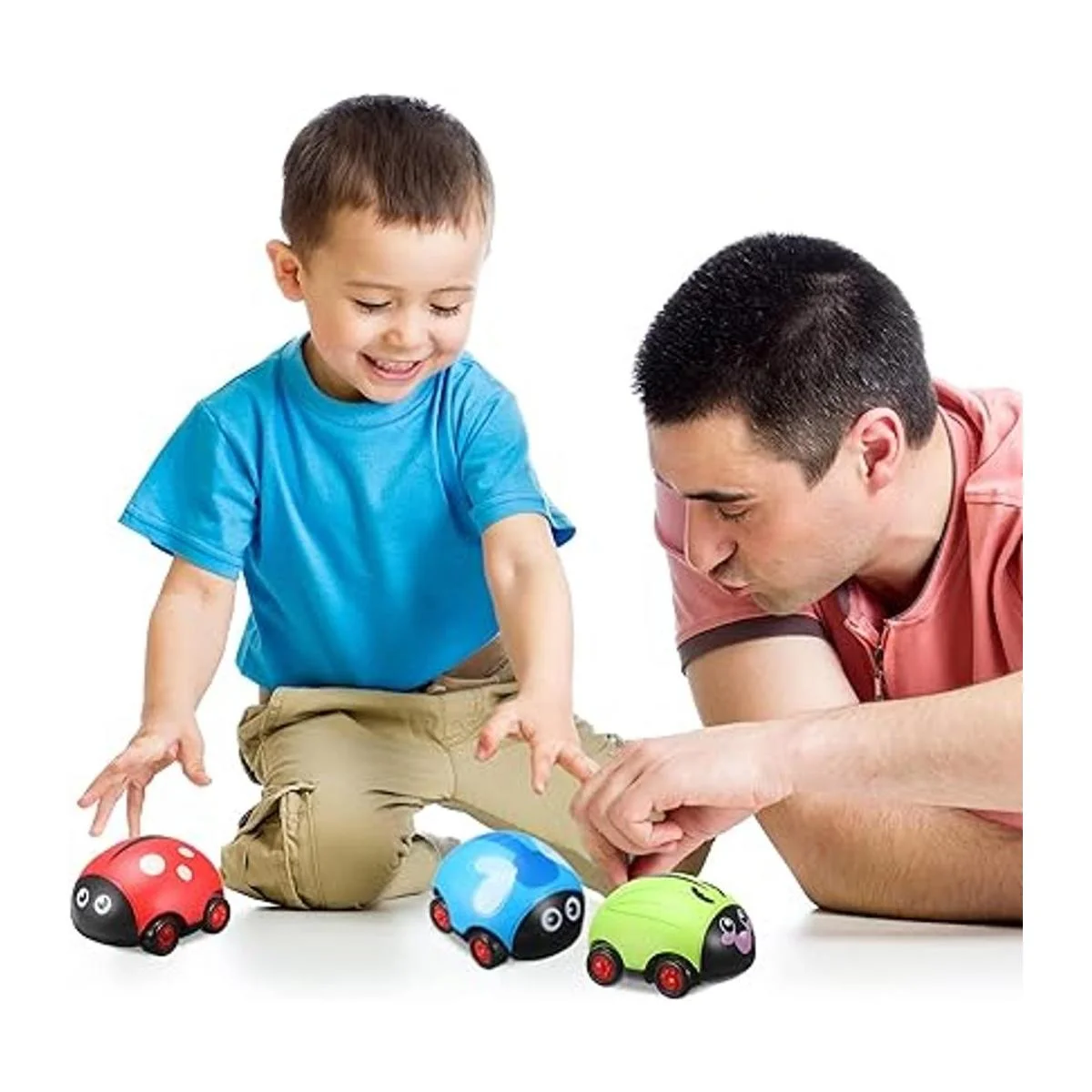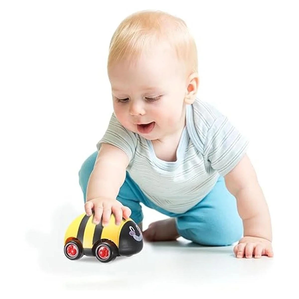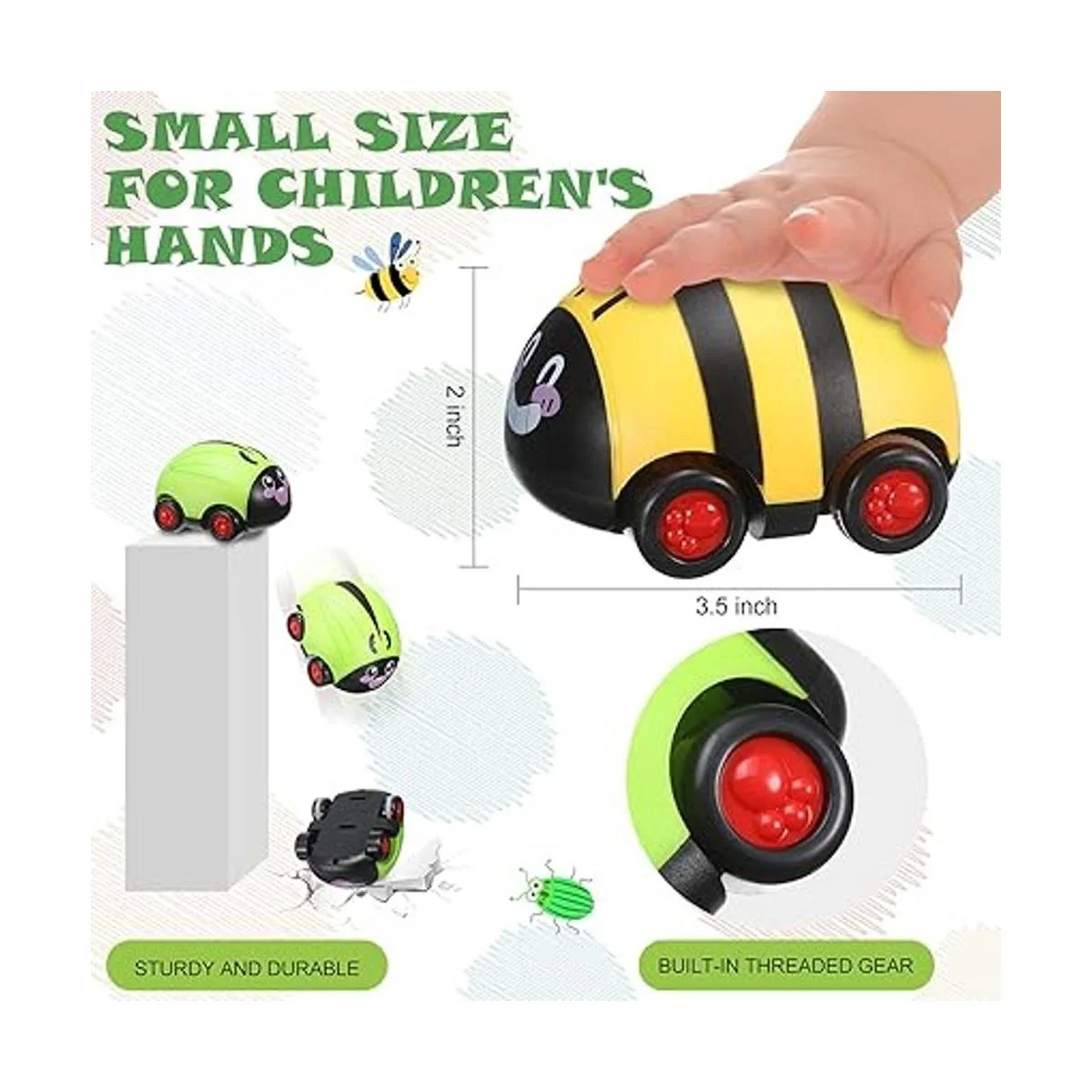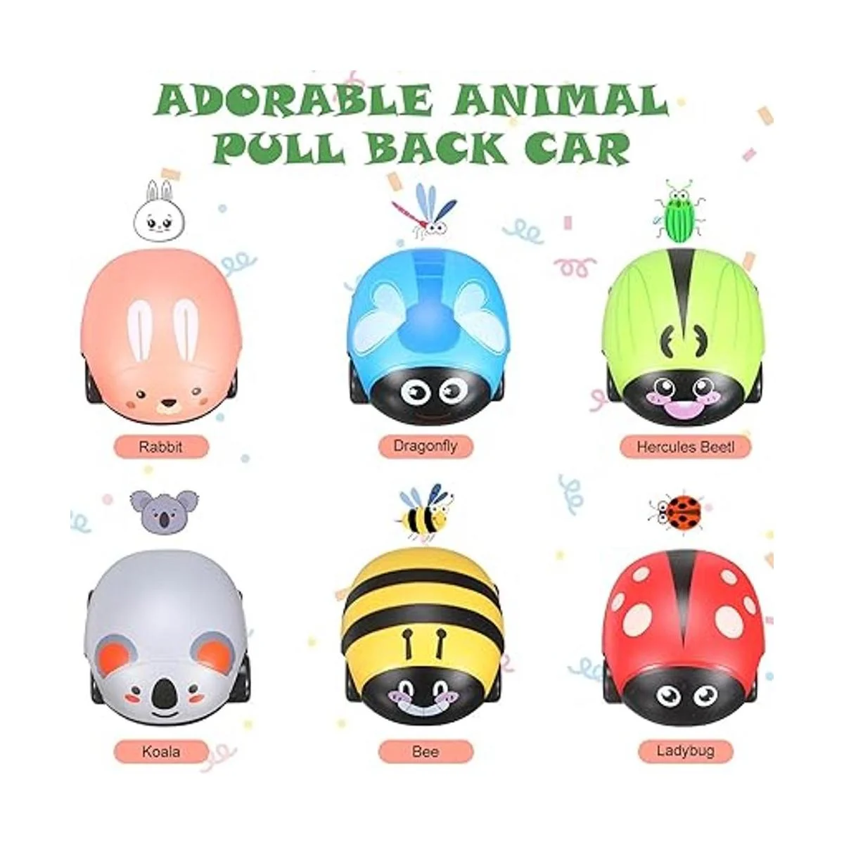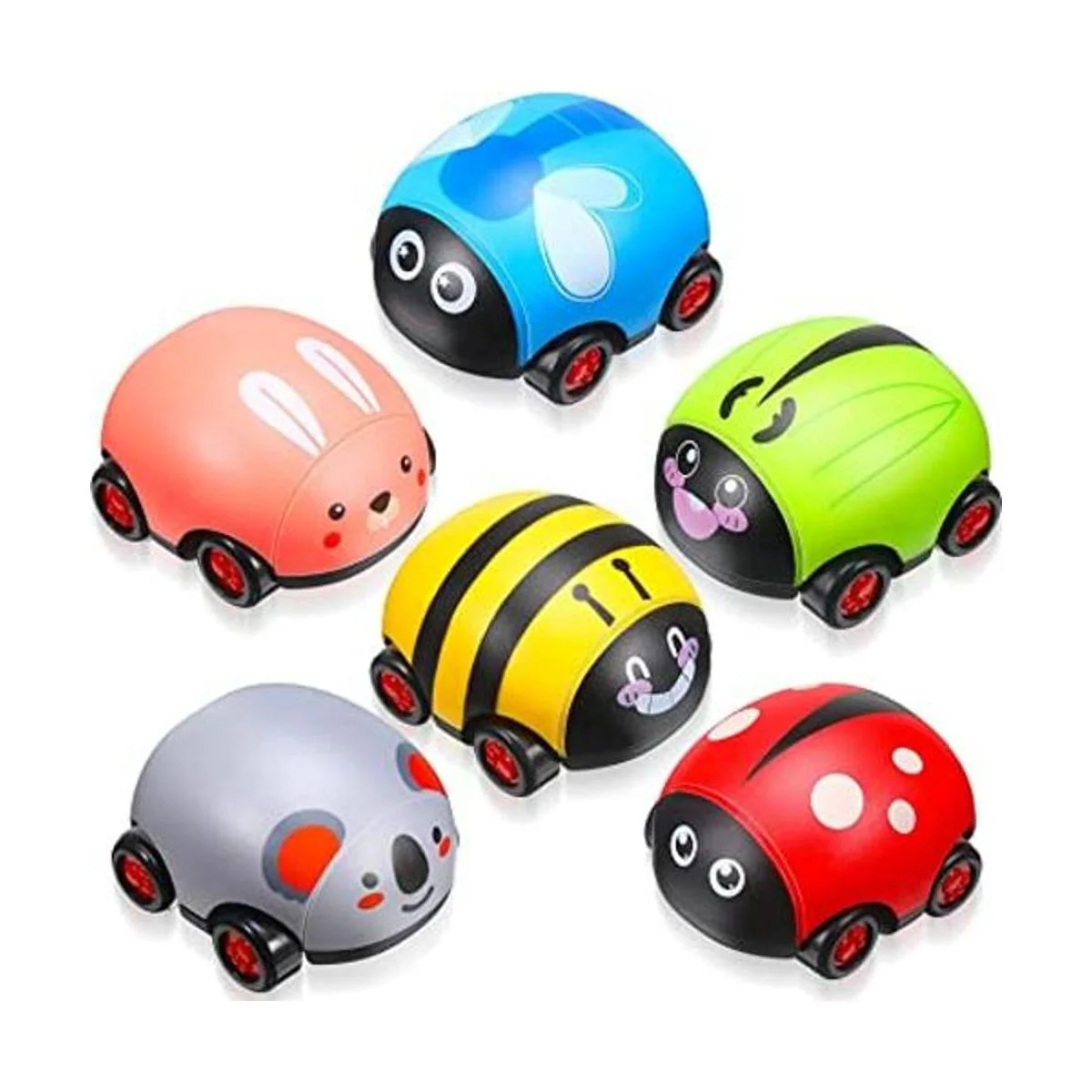 Diseños temáticos de animales: estos coches de empuje y vuelta cuentan con 6 diseños de animales, es decir, conejo, koala, libélula, abeja, mariquita y escarabajo, muy adorable e interesante, por lo que los niños y niñas pueden elegir el que les gusta y jugar diferentes roles jugando diferentes coches