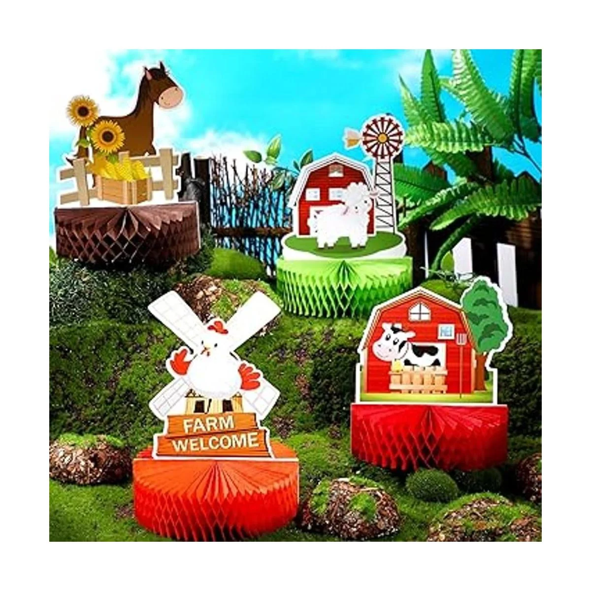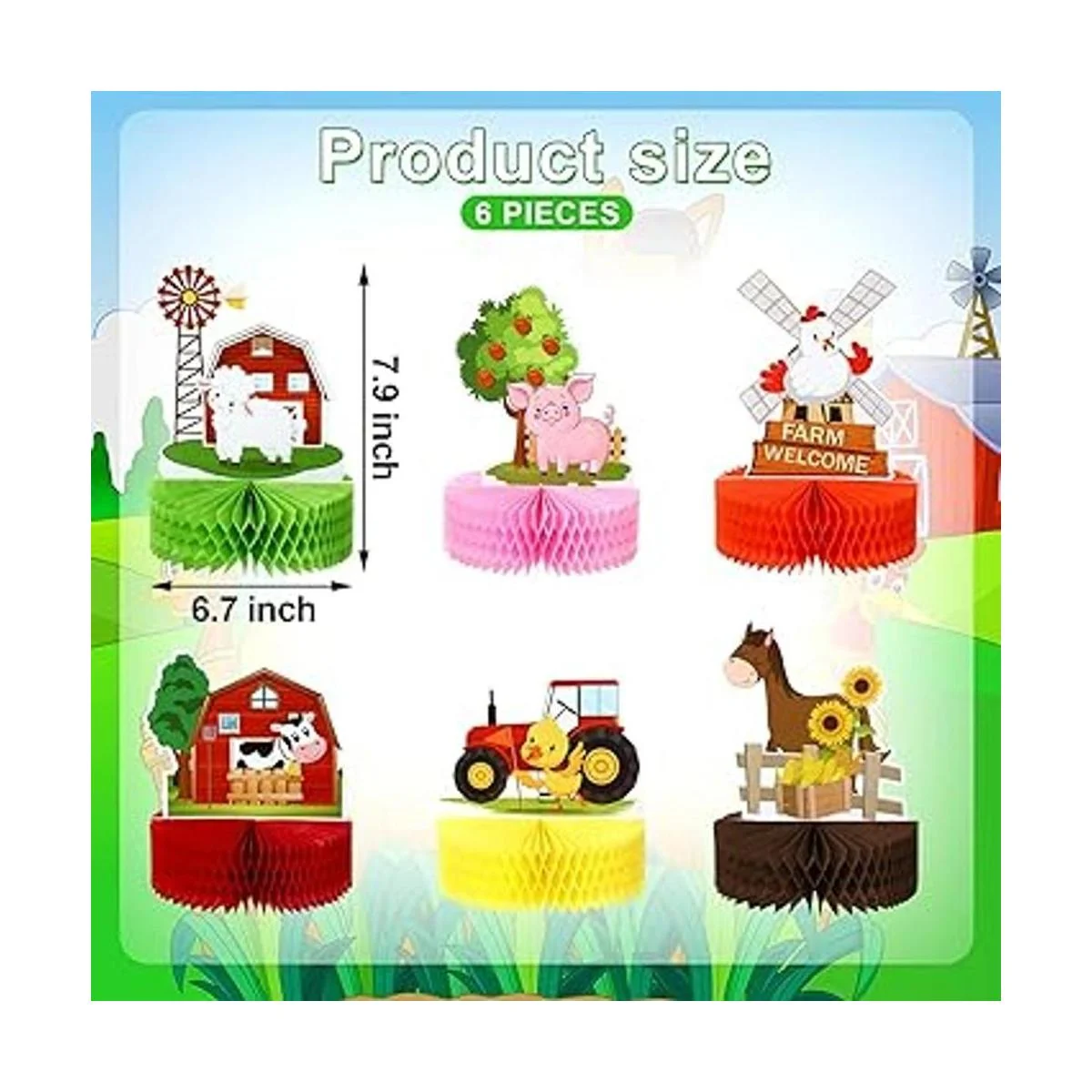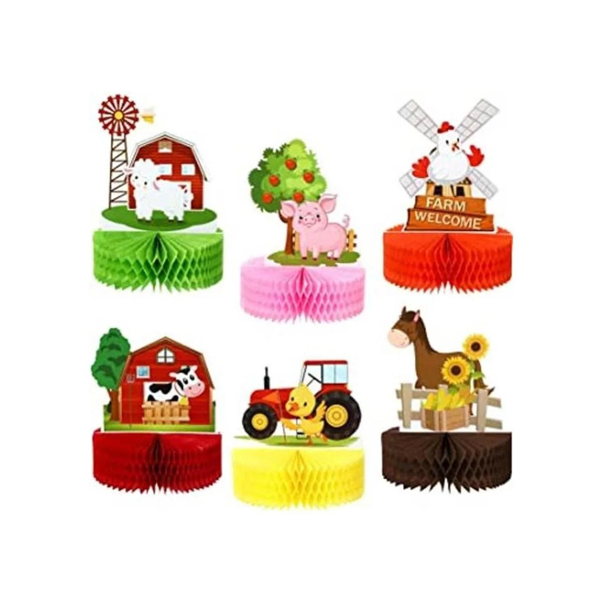 Decoraciones de fiesta: recibirás 6 centros de mesa de panal de animales de granja en diferentes estilos, los bonitos diseños y el tamaño adecuado hacen que estas decoraciones de animales de granja se conviertan en los suministros de fiesta brillantes y adorables para la fiesta de cumpleaños