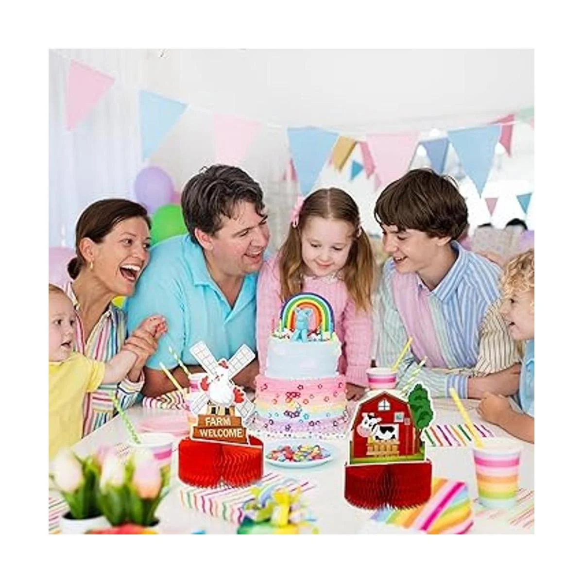 Material fiable: los centros de mesa de decoración de animales de granja están hechos de papel grueso y resistente, diseñado con patrones adorables y colores brillantes, que no son fáciles de romper, lo que nos permite usarlo con confianza