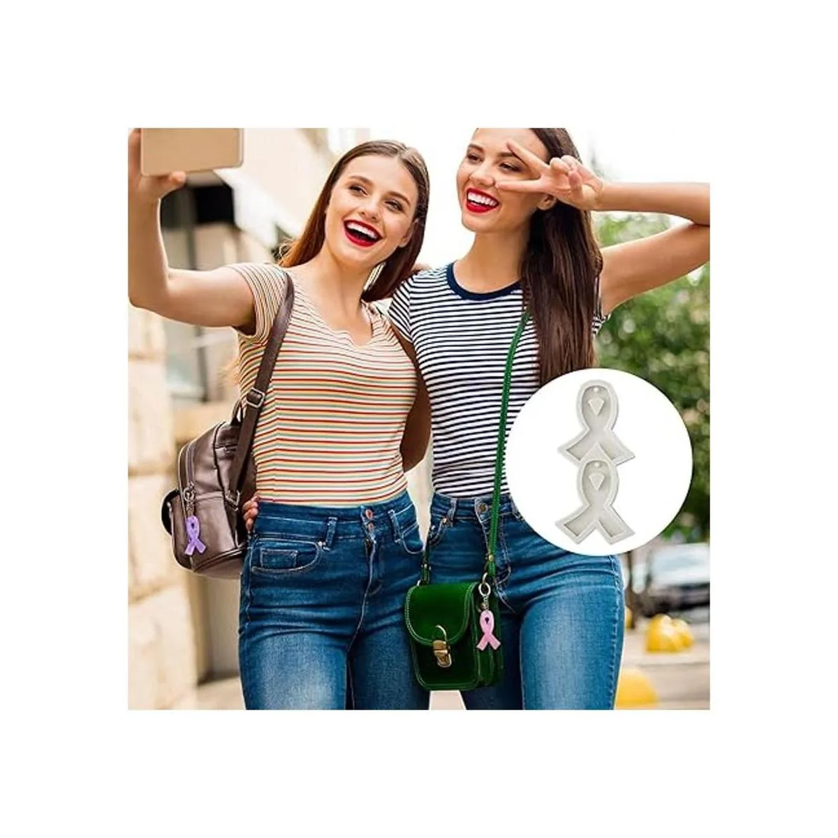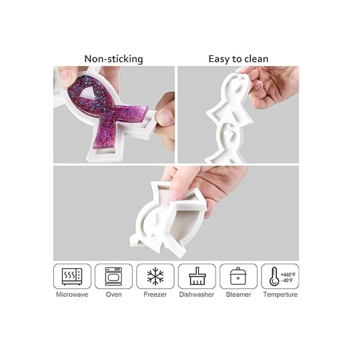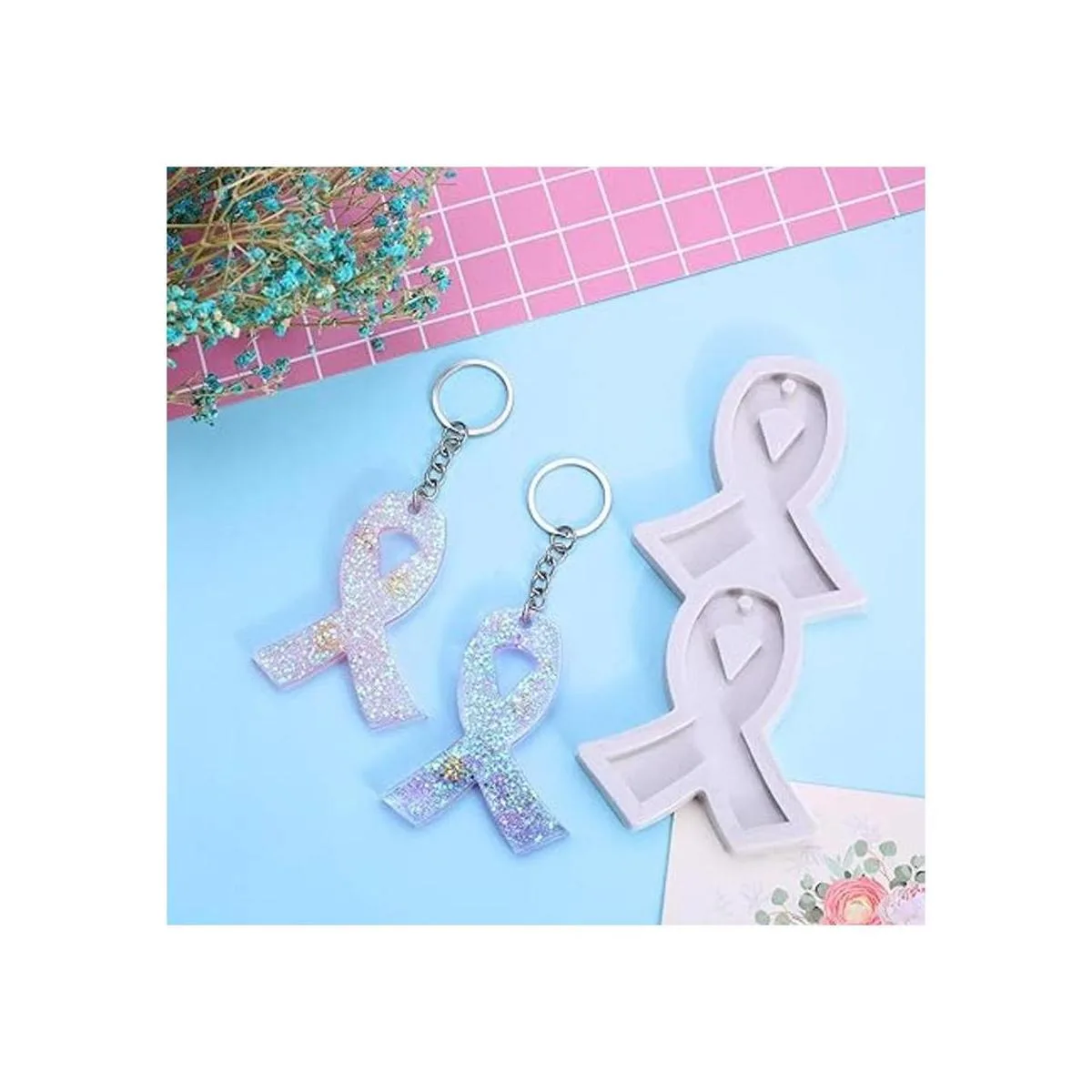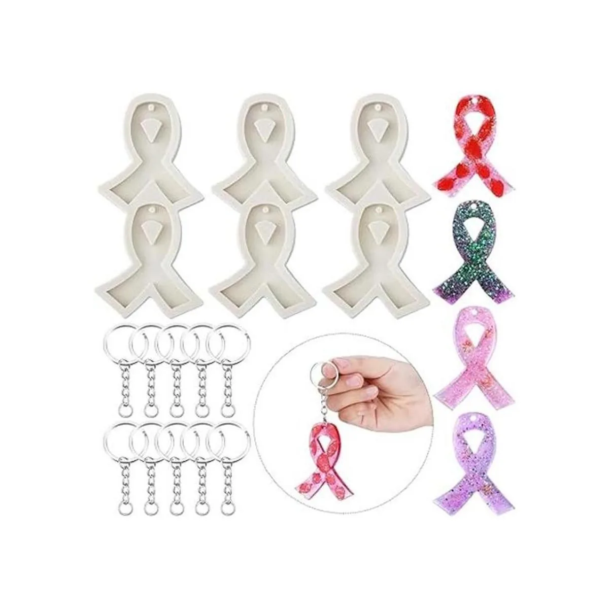 6 piezas de cinta de silicona para concientización, molde con agujero y 10 llaveros para collar de bricolaje, aretes, crayones, manualidades de arcilla, fondant, chocolate, caramelo