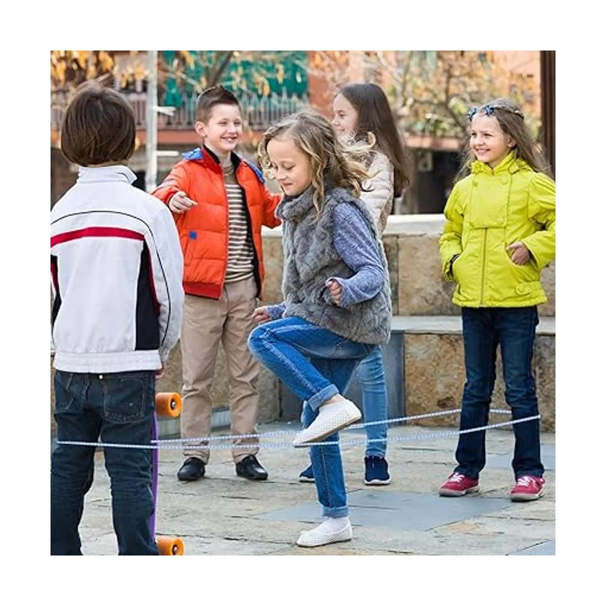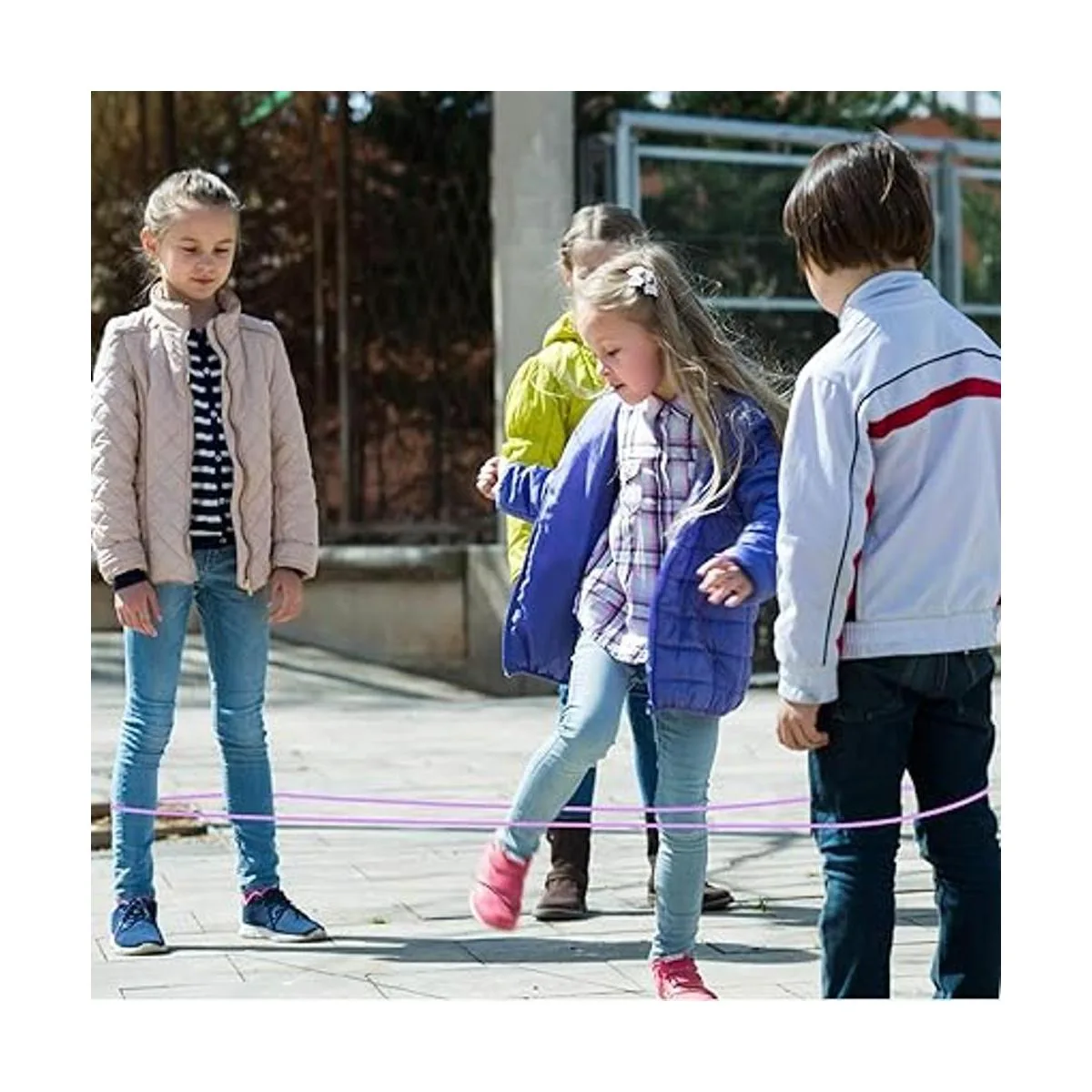 Interesante para jugar juntos: mientras que 2 personas sujetan la banda de goma firmemente con sus piernas, un tercer jugador salta, fuera y alrededor de la cuerda; buenas herramientas para jugar con familias o amigos, mejorar la relación entre sí y poseer un tiempo feliz, sólo da rienda suelta a la imaginación para enriquecer la forma de jugar