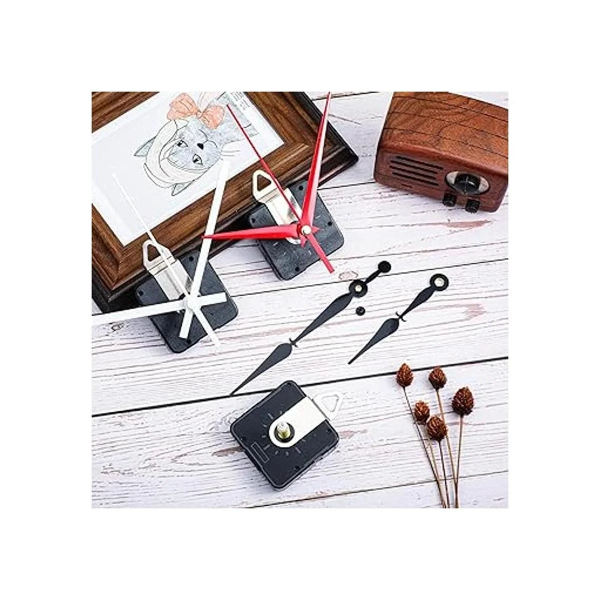 Bonito juego de reparación de relojes de bricolaje: recibirás 6 movimientos de reloj de eje largo de alto par y 6 pares diferentes de manos, junto con 6 ganchos y 6 pegadores, estas piezas de repuesto se adaptan bien a diferentes estilos de marco de reloj, que son buenas para reparar, reemplazar o hacer un reloj por ti mismo; hay más funciones esperando que lo descubras