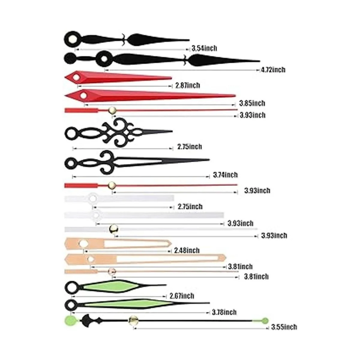 6 estilos diferentes de manecillas: tendrás 6 pares de manecillas de reloj en diferentes estilos y longitudes para tus opciones, puedes elegirlas y combinarlas de acuerdo a las demandas reales, son adecuadas para creaciones y reparaciones de relojes, también te ofrecen un efecto hermoso y decorativo