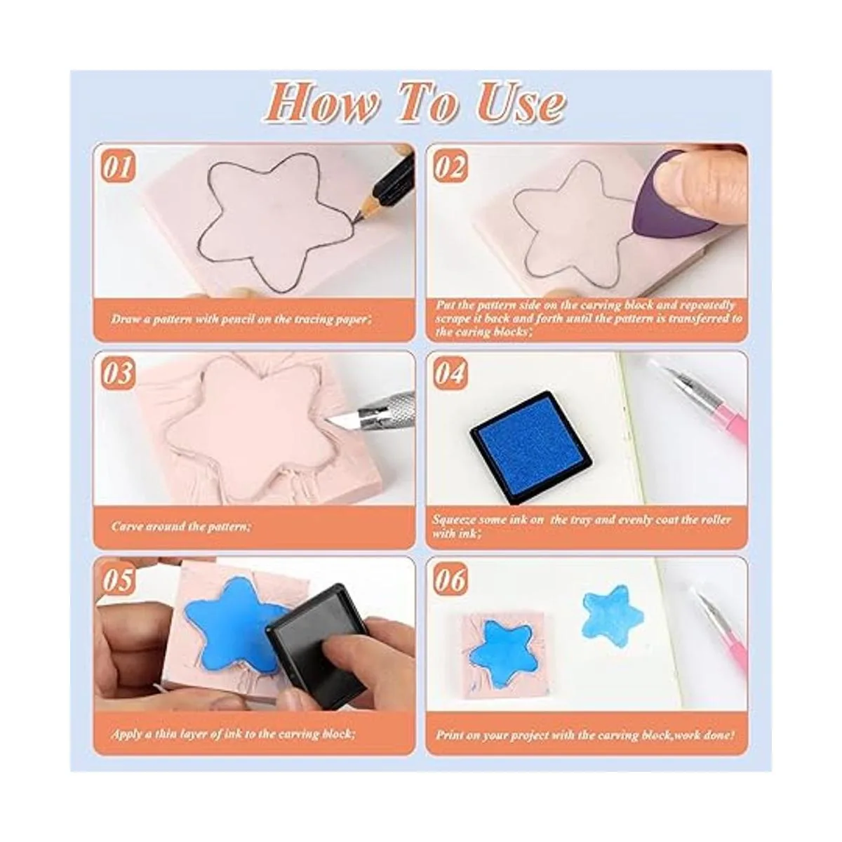 Material de alta calidad: el bloque de grabado está hecho de goma respetuosa con el medio ambiente, con textura suave y delicada, sin olor y sin polvo. Se pueden crear detalles claros y finos.