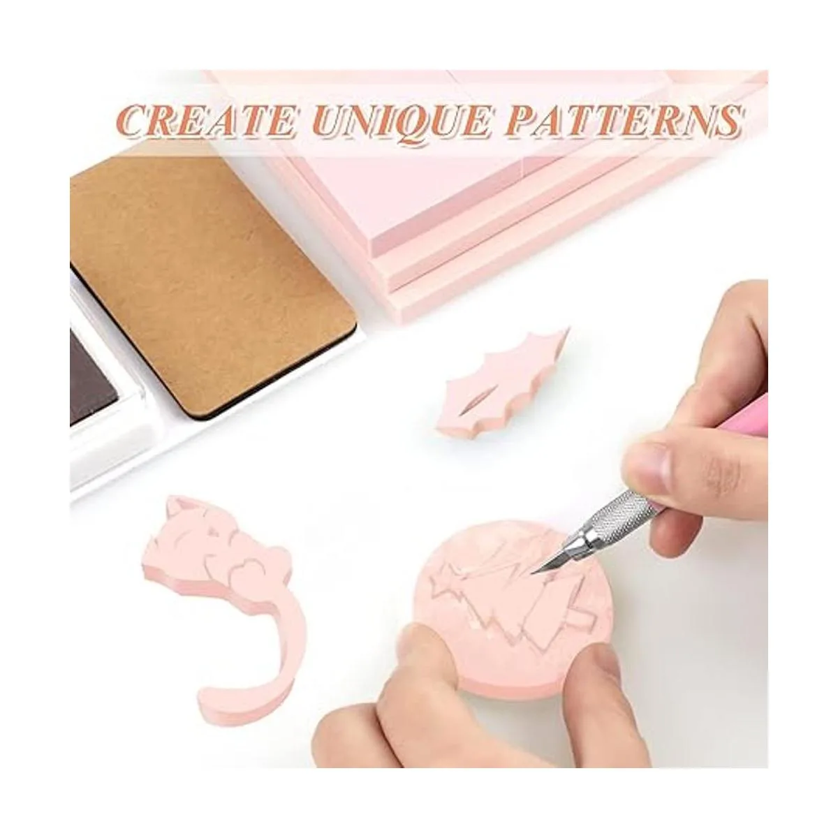 Fácil de grabar: los bloques de tallado de goma suave son perfectos para hacer sellos, fabricación de medallones temáticos, decoración de boda, decoración de baby shower, ideal para la escuela y el hogar.