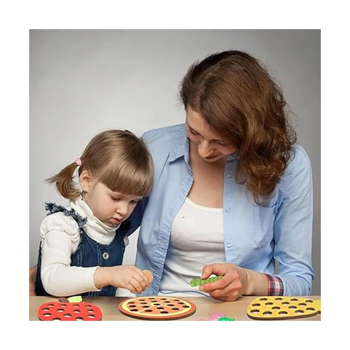 Material seguro y duradero: estos juguetes de cordones para niños pequeños de 1 a 3 años, están hechos de madera duradera, sin plomo, sin BPA y sin olor químico. Tamaño adecuado fácil para manos pequeñas para sostener y jugar, también es lo suficientemente grande como para evitar que se traguen accidentalmente. Regalo perfecto para cumpleaños, Pascua y Navidad