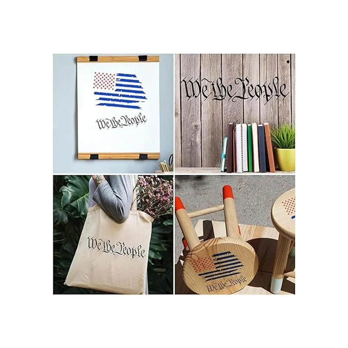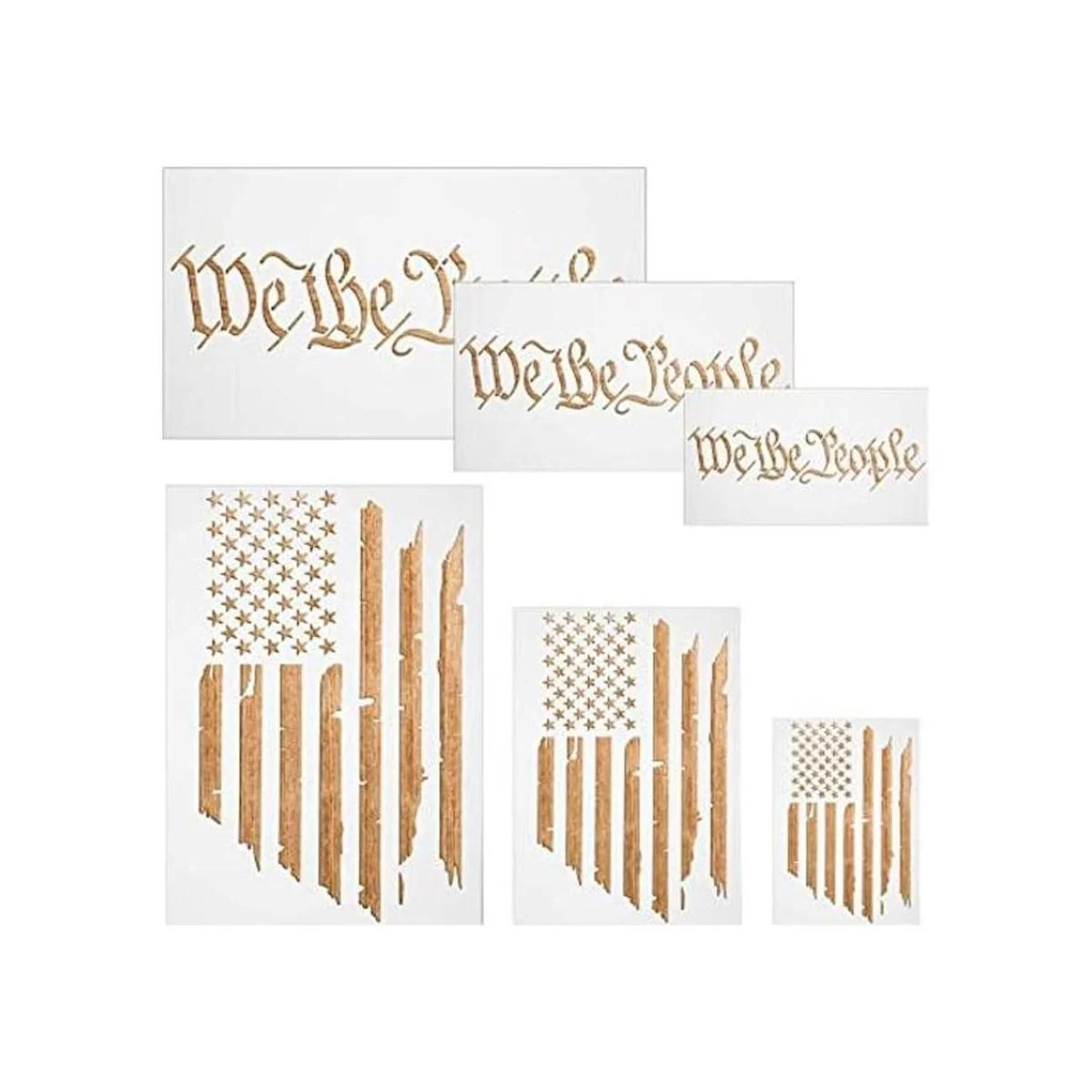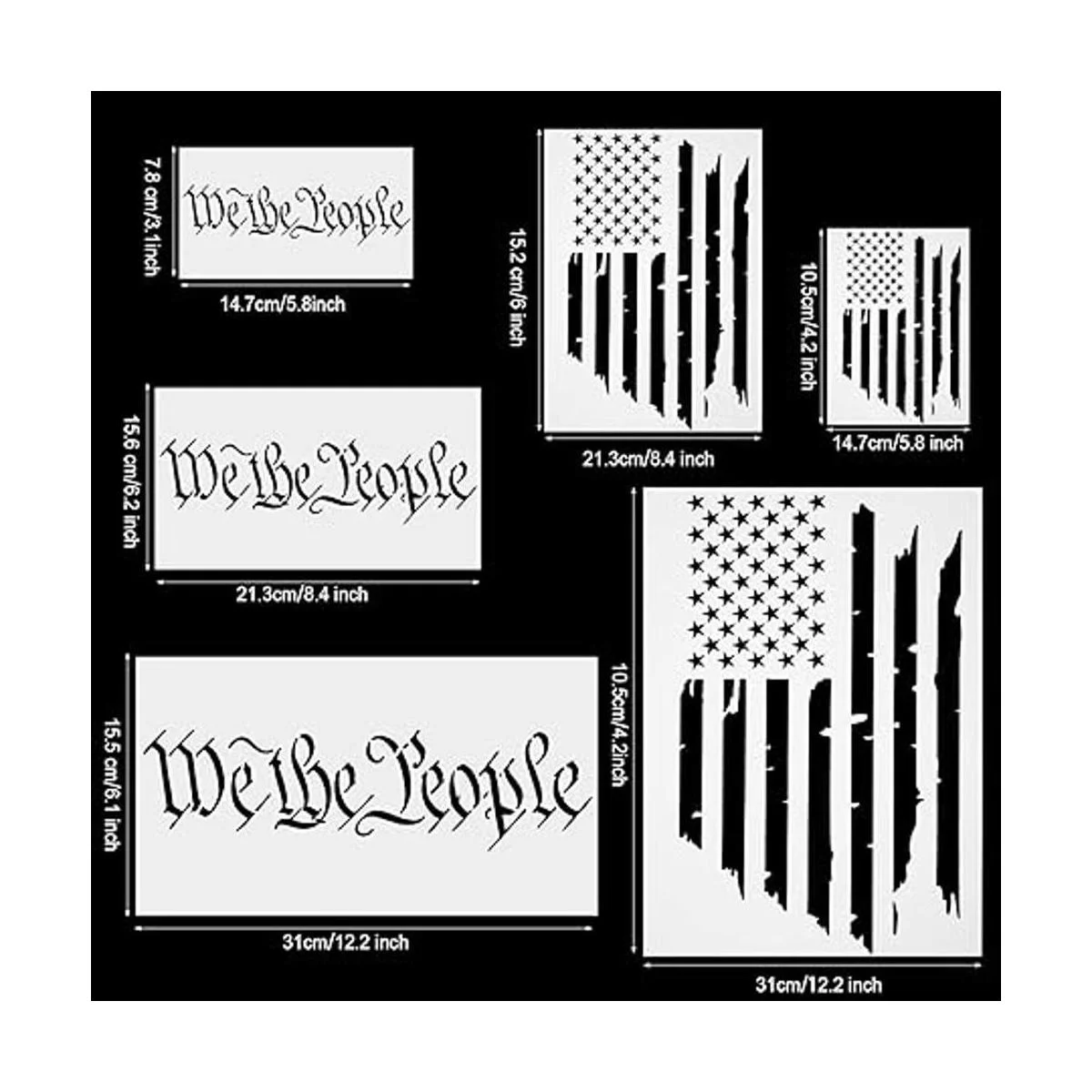 Diferentes estilos: recibirás un total de 6 plantillas de trazado reutilizables en 2 estilos, incluyendo la bandera estadounidense y las palabras de We The People, 3 piezas de cada estilo, cantidad suficiente y estilos ricos para satisfacer tus diversas necesidades en la vida diaria