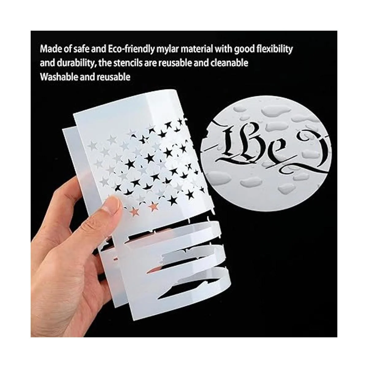 Material de calidad: nuestras plantillas de bandera estadounidense están hechas de material PET, resistente y ligero, con bordes suaves y transparentes, que te ayudan a dibujar patrones delicados y compactos fácilmente, y reutilizable, cada una puede servirte durante mucho tiempo