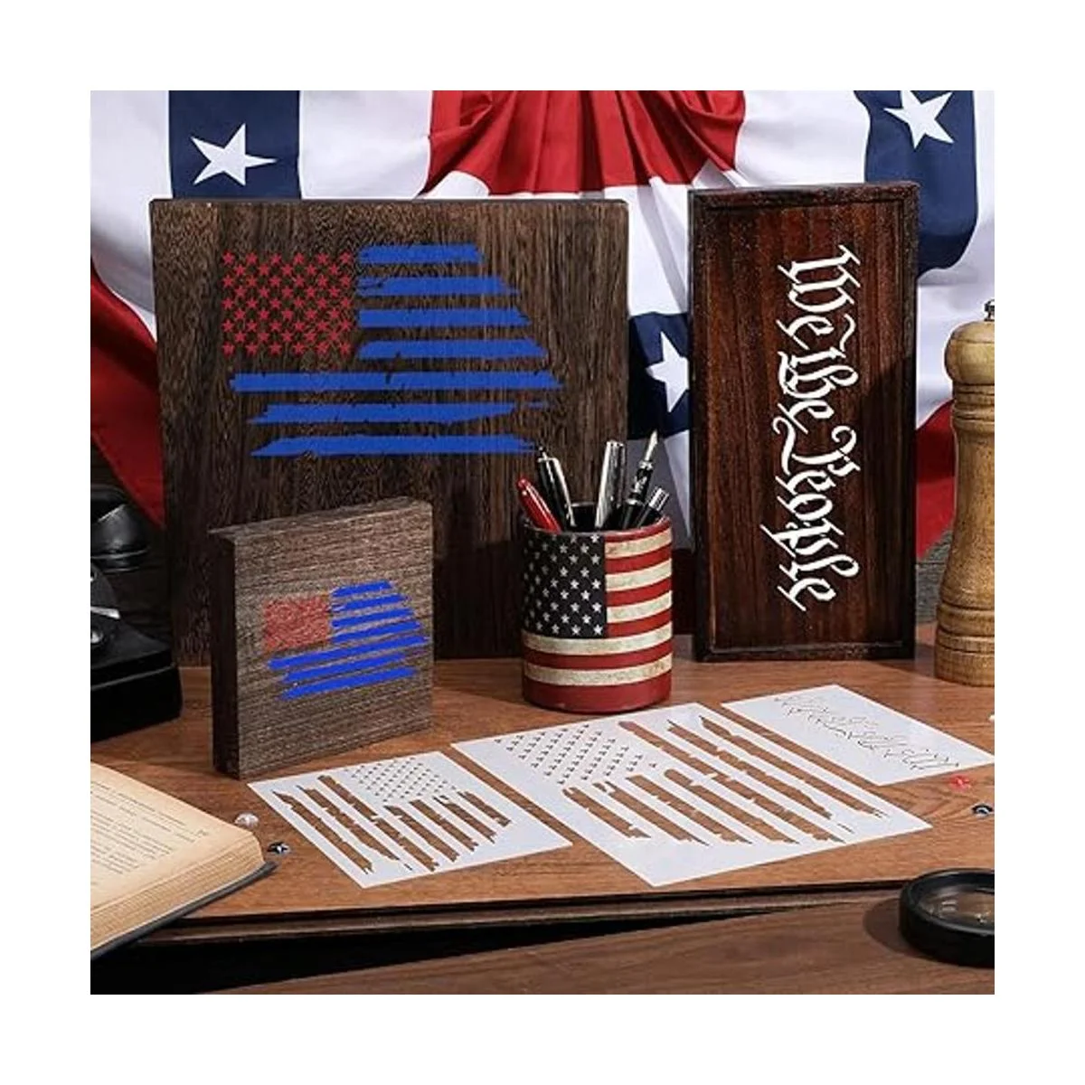 6 plantillas de bandera estadounidense, plantillas reutilizables para pintar sobre madera, álbumes de tarjetas, pared, suelo, manualidades, 6 tamaños