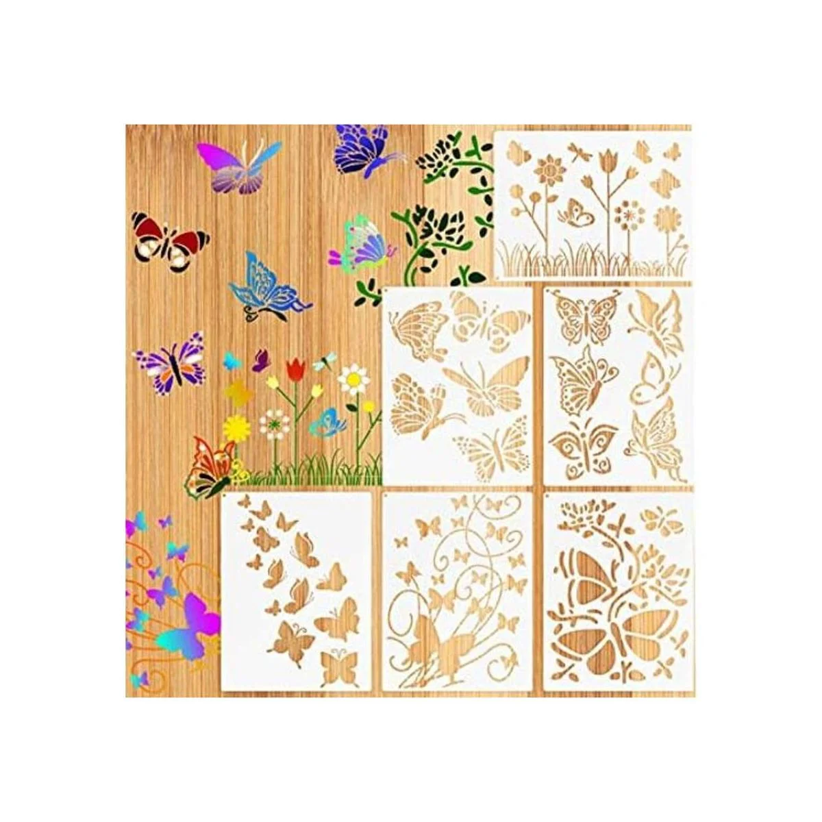 6 plantillas de pintura de mariposas, plantillas de flores de diente de león, plantillas reutilizables de Mylar con anillo abierto de metal para pintar en pared de madera, decoración del hogar, manualidades