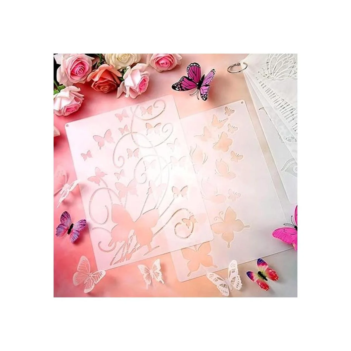 Lo que recibirás: el paquete contiene 6 plantillas temáticas de mariposa y 1 anillo abierto de metal, 7 piezas en total; cada plantilla mide aproximadamente 11.0 x 8.3 in, comprueba el tamaño antes de comprar