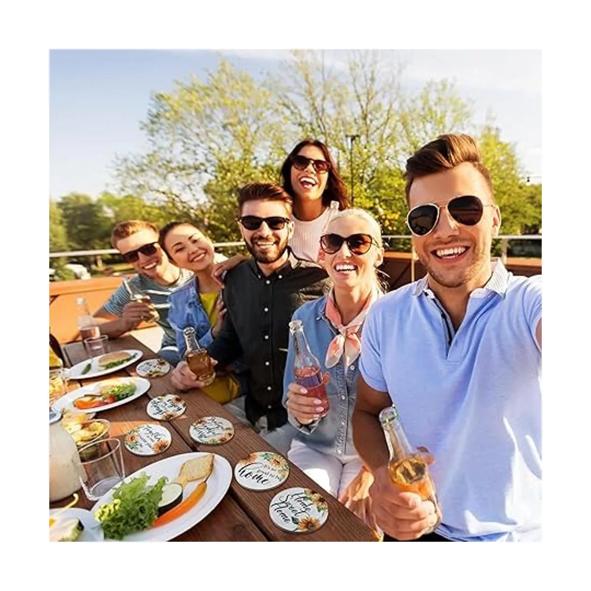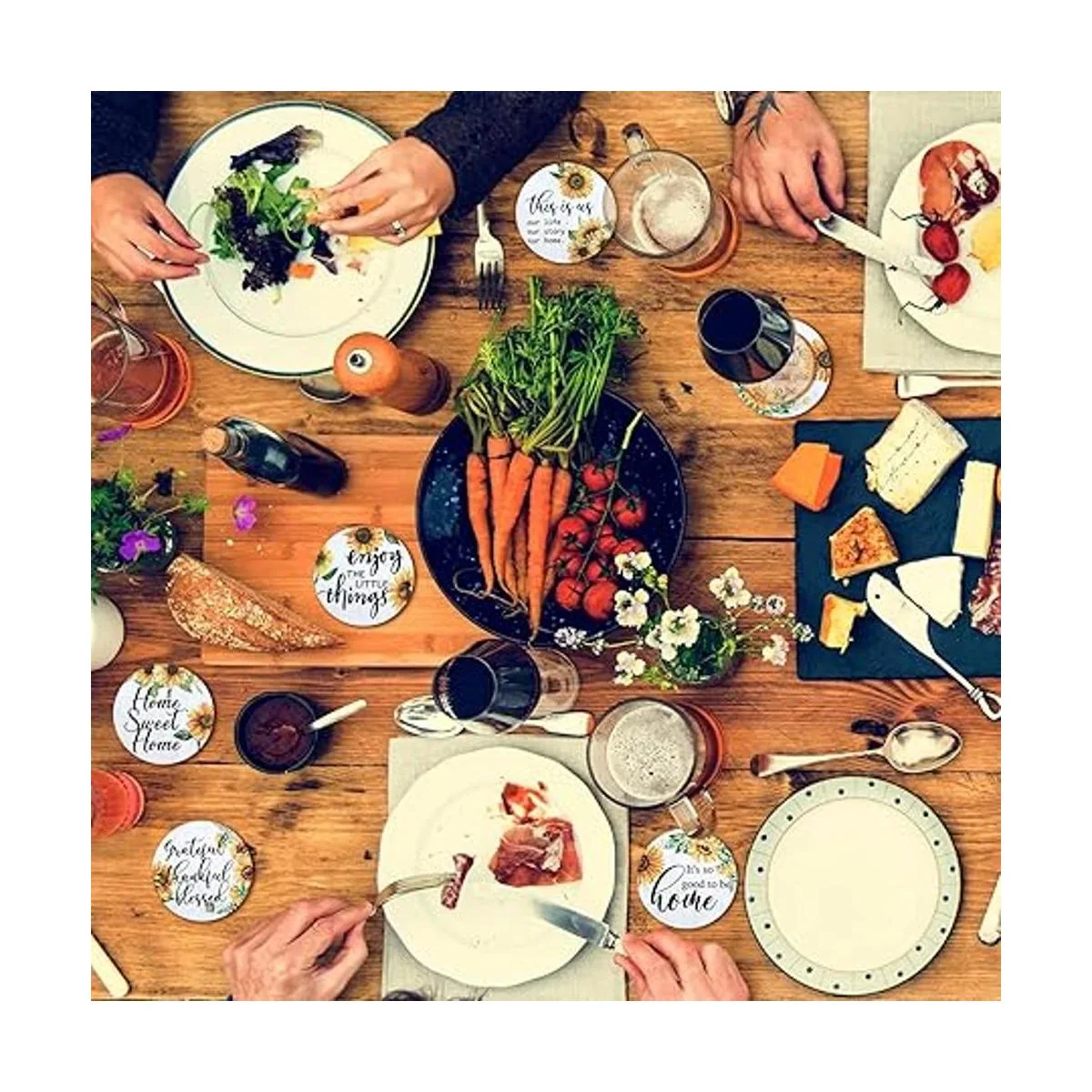Diseño exquisito y positivo: estos posavasos de girasol están impresos con diferentes frases inspiradoras y hermosos girasoles, diseño simple pero elegante, que puede ayudarte a crear un estilo refinado de hogar; y las palabras de impresión pueden traer una sensación positiva al beber