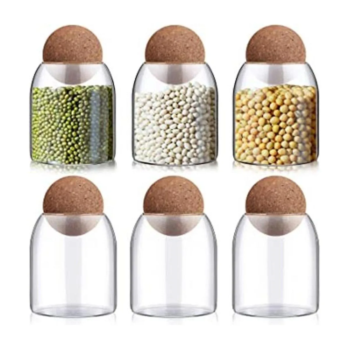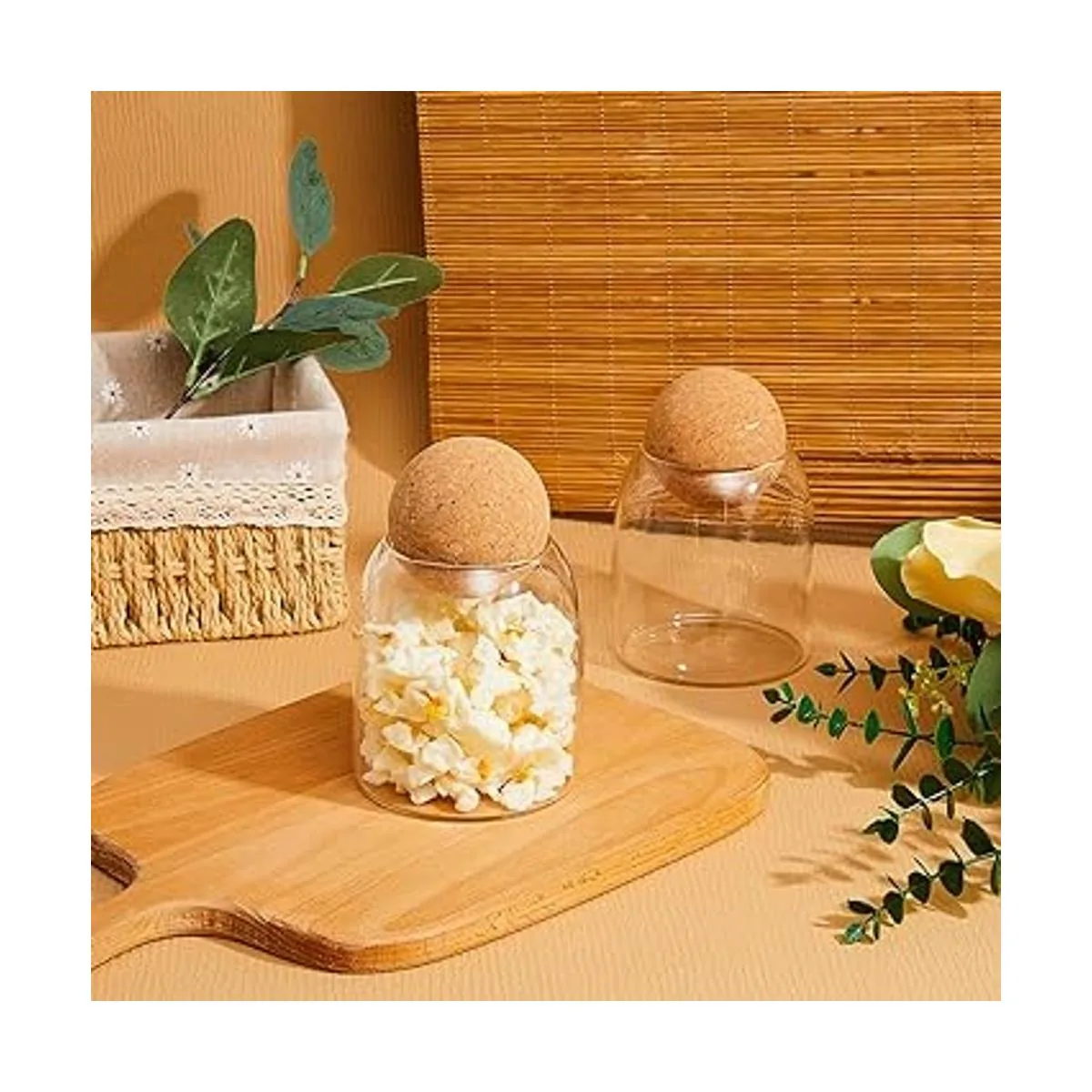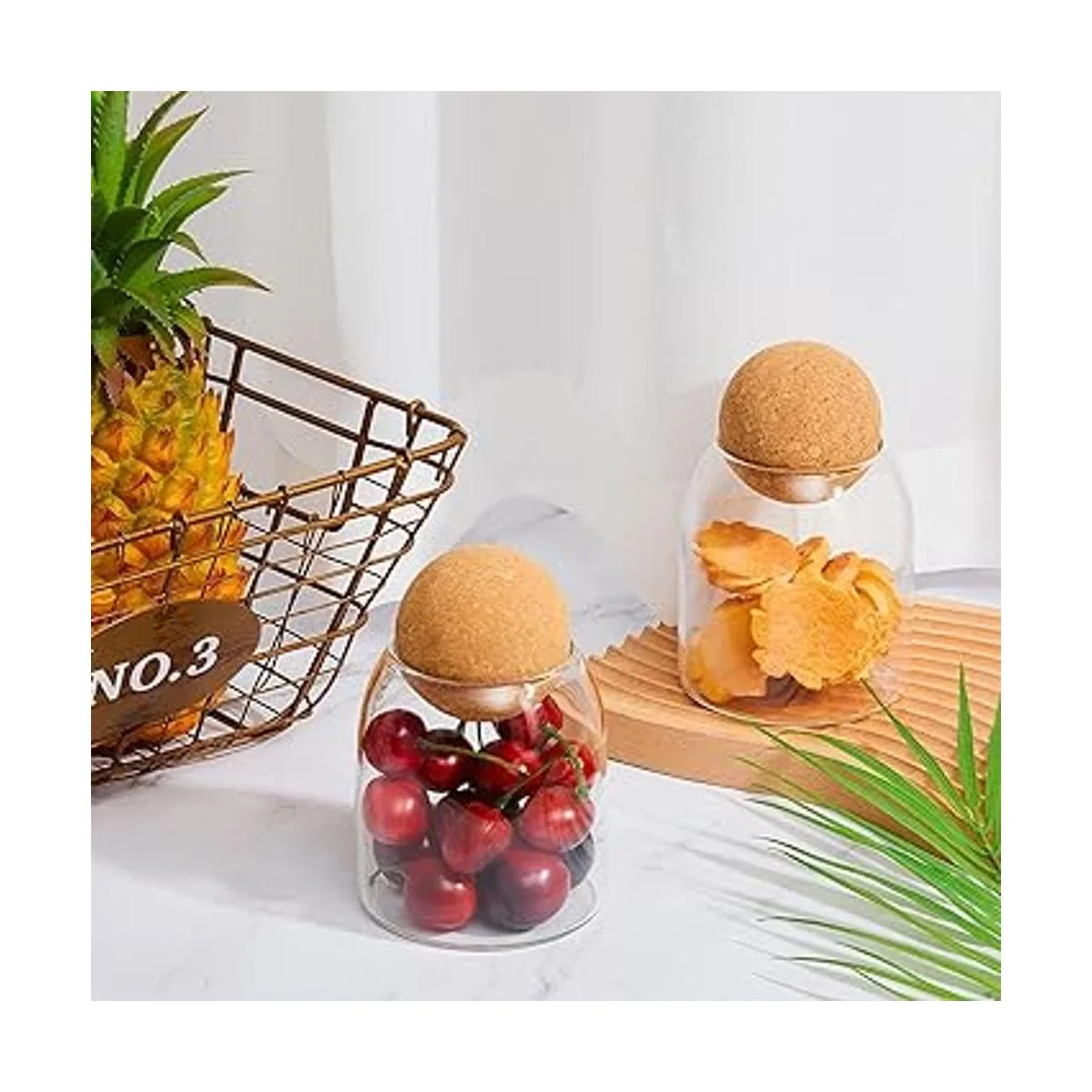 Cómodo y práctico: el recipiente de almacenamiento con corcho de bola adopta un diseño de cuerpo de vidrio transparente, por lo que puedes ver rápidamente el contenido de un vistazo, sin quitar la tapa