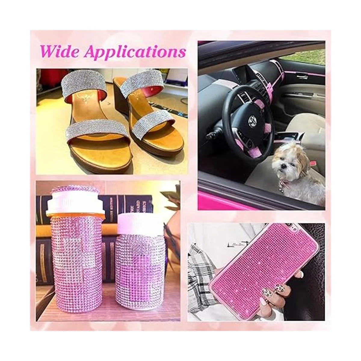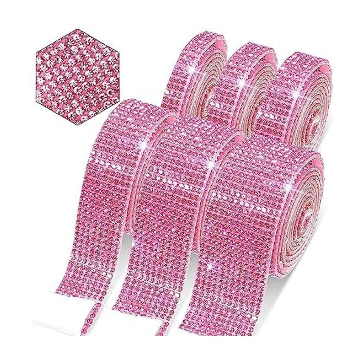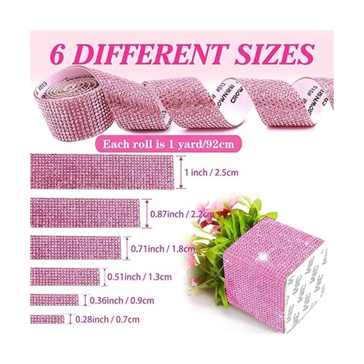 6 rollos de cinta autoadhesiva de diamantes de imitación con diamantes de imitación de 0.079 pulgadas para manualidades, decoración de boda, decoración de teléfono de automóvil rosa claro
