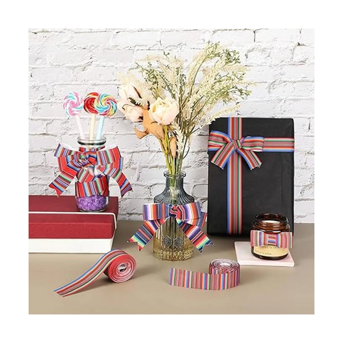 6 rollos de cintas de fiesta mexicanas con rayas de arco iris, cintas coloridas de serape, cinta de grogrén mexicana para envolver tú mismo, fiesta de otoño, manualidades, decoración, lazos para el cabello, suministros de costura