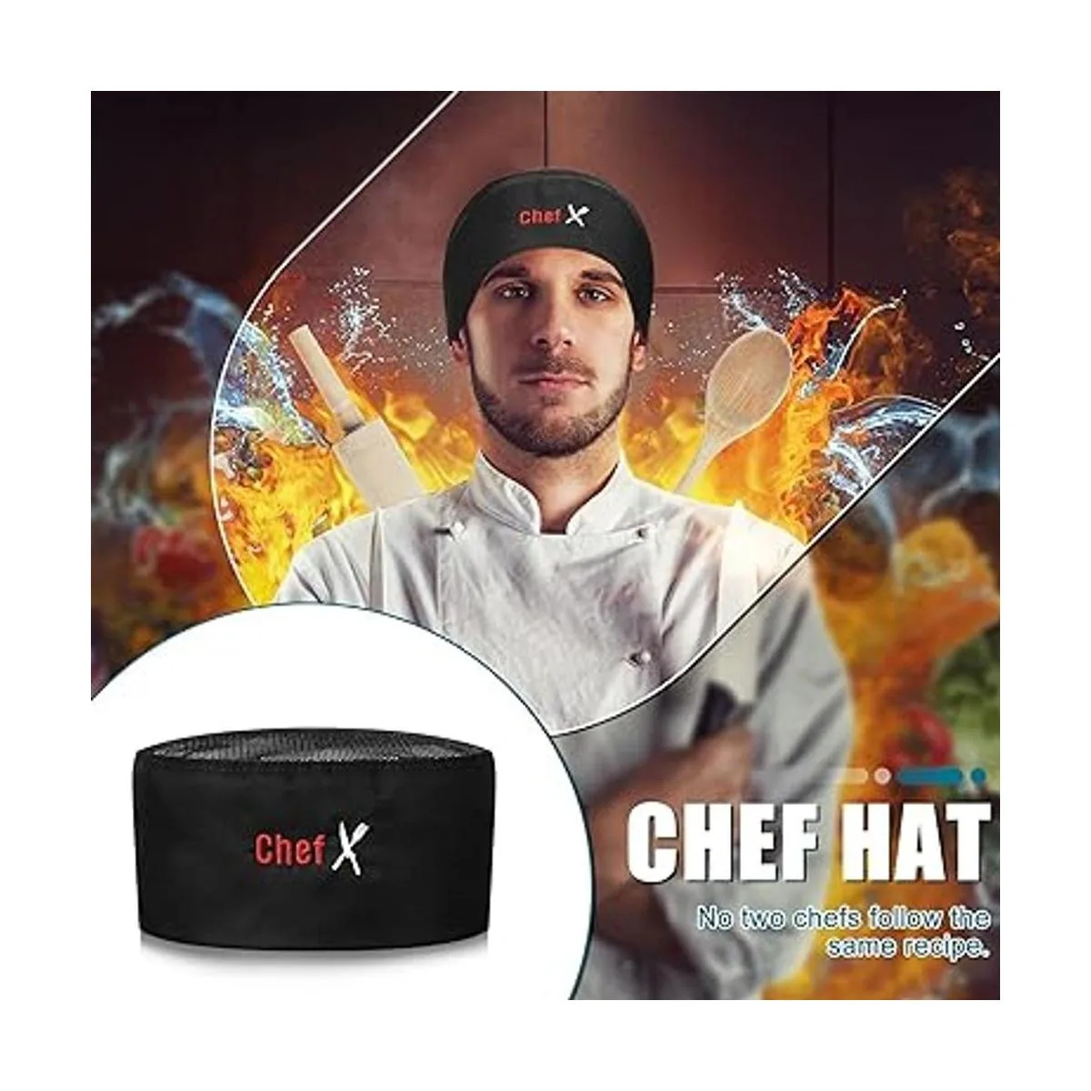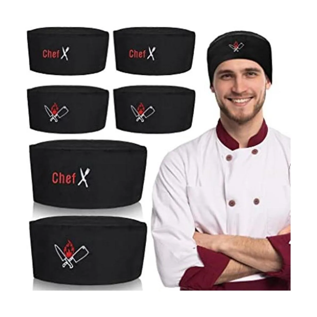 6 sombreros de chef unisex de malla superior para cocina, gorras de cocina transpirables para hombres y mujeres, gorro elástico de cocina de tela de calavera, gorra de chef color negro, Negro, 01