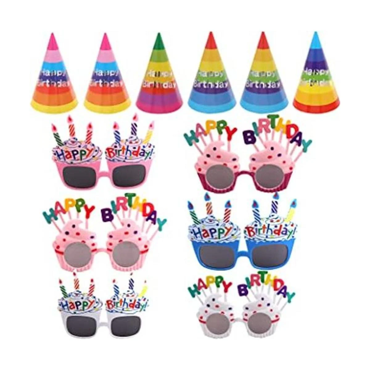 6 sombreros de feliz cumpleaños y 6 lentes de sol de feliz