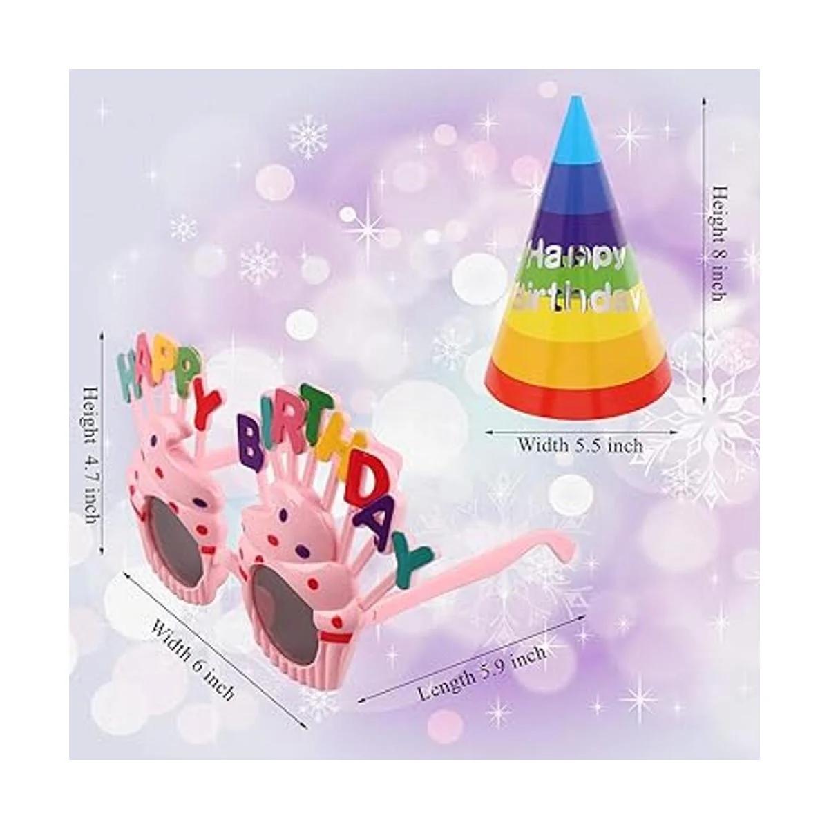 Divertidos sombreros de feliz cumpleaños y lentes de sol de plástico de feliz cumpleaños muy adecuados para ser usados cuando celebras fiestas de cumpleaños para aumentar el ambiente alegre y compartir la alegría con amigos y familiares.