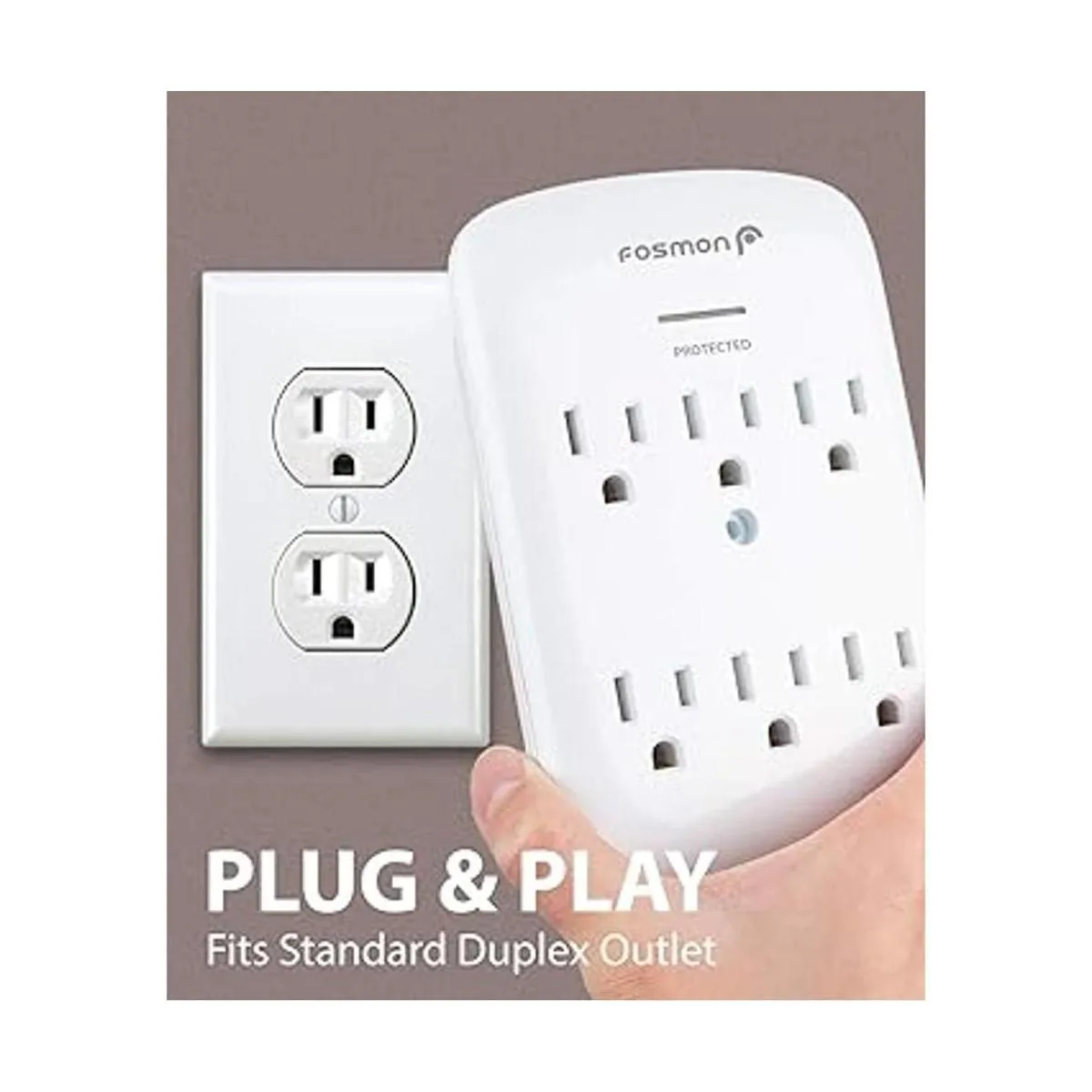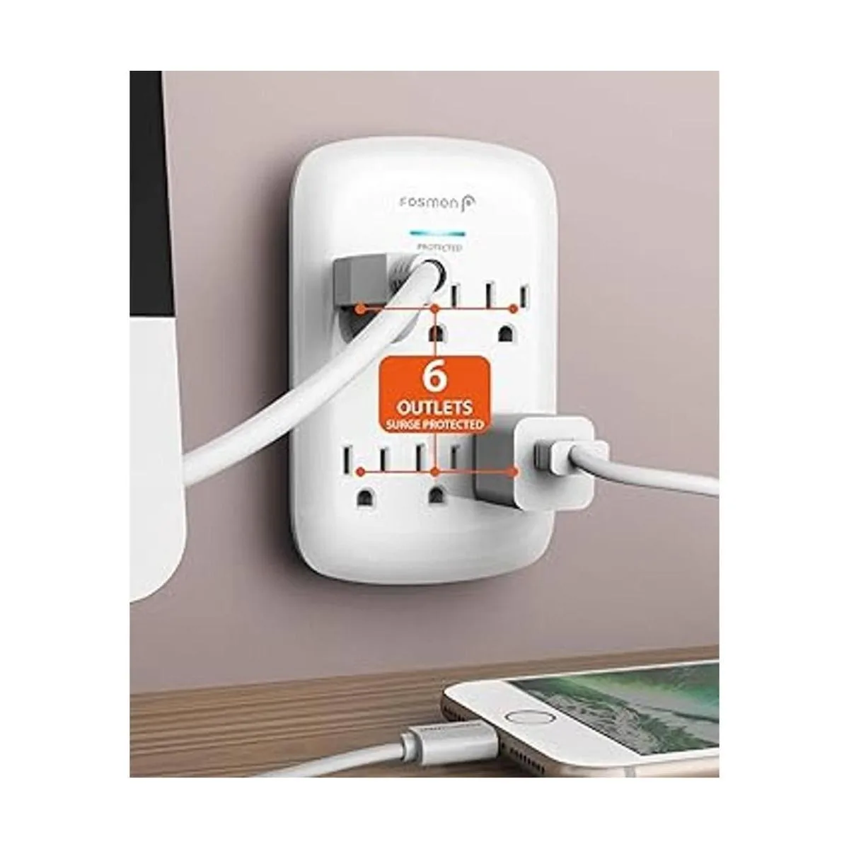 6 Soporte de pared de salida Surge Protector, Fosmon ETL Listed 700 julios, 15 A 125 VAC 60 Hz 1875 vatios Wall Outlet Adapter, color blanco