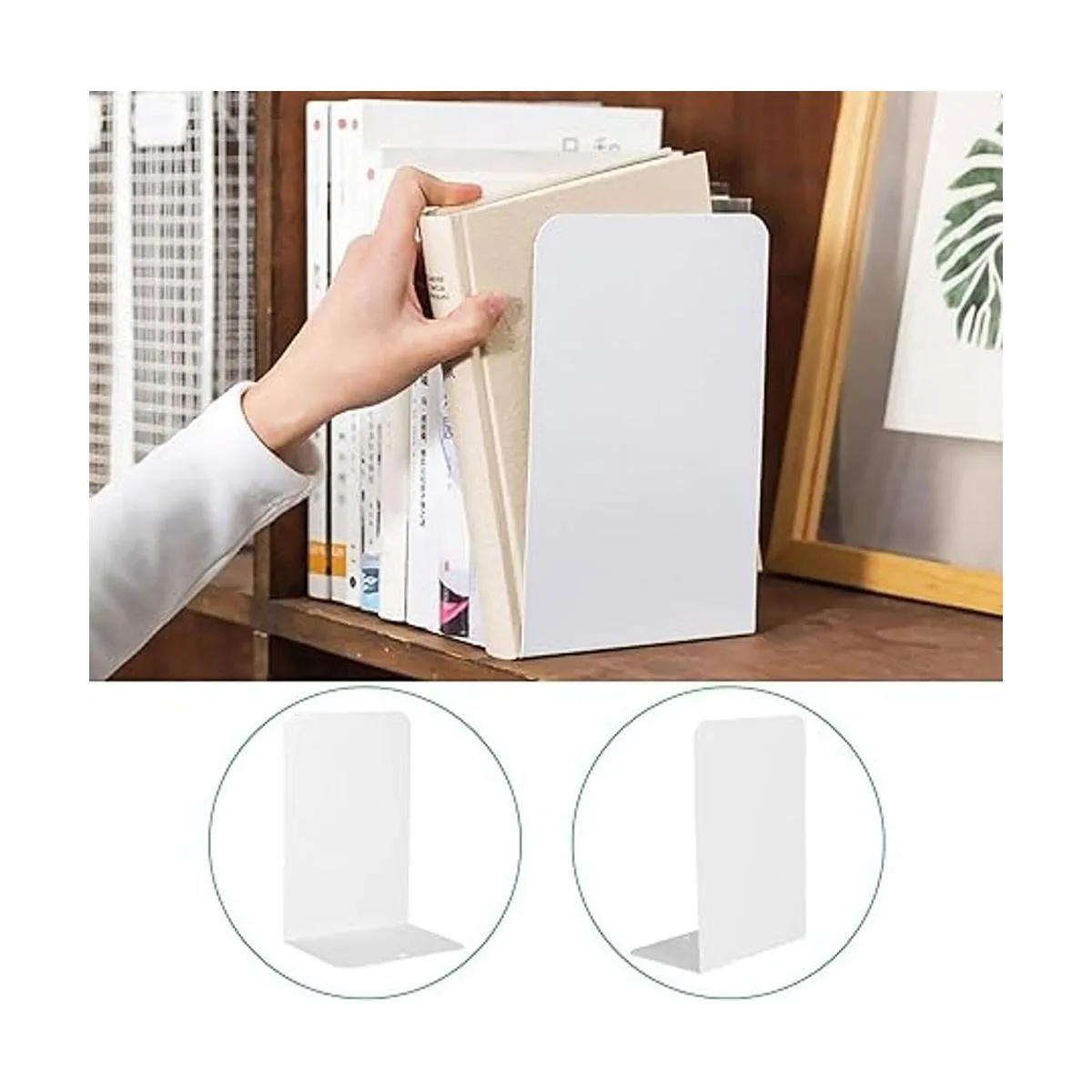 6 sujetalibros de metal blanco, sujetalibros para estantes, extremos de libros resistentes para sostener libros, tapón de libros para estantes, libros pesados, decorativo, hogar, oficina, niños 1